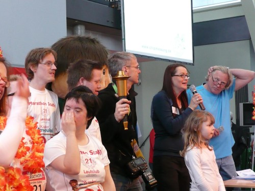 In der Halle beginnt gerade der Abschluss. Das Motto für 2013 wird bekanntgegeben: All You Need Is Love. DJ Bernd spielt den gleichnamigen Hit der Beatles, die Halle singt lautstark mit. Im Mai 2012 gibt es noch einen weiteren sportlichen Höhepunkt für den Laufclub 21. Sie tragen die Olympische Fackel auf 210 Kilometer von Fürth nach München, wo die Special Olympics, die Spiele für Menschen mit Behinderung, stattfinden werden.