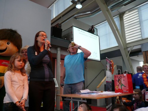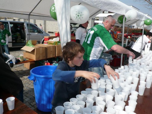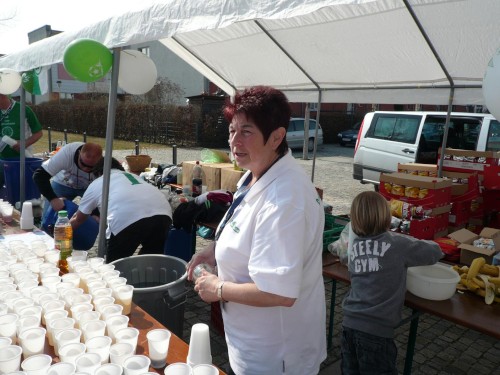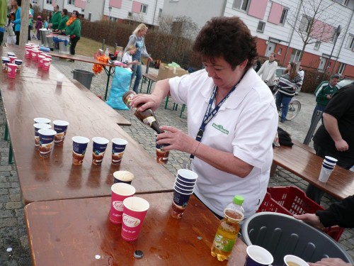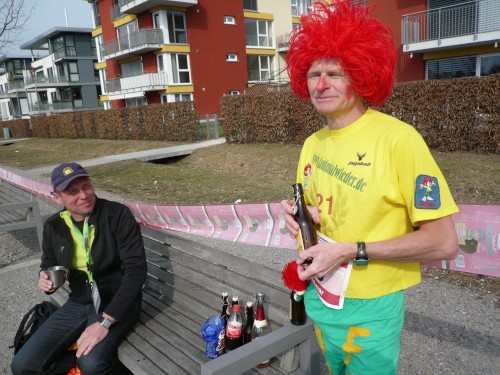 Norbert Wilhelmi vertreibt sich sein letztes (Foto) Stündchen mit einer Blondinen. An der V-Stelle wird nun mangels Cola gleich Bier ausgeschenkt. Die zwei Helfer lassen sich von mir zu einem kleinen Umtrunk einladen. Wir stoßen auf den Erfolg des Tages an.