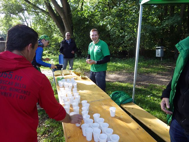 Es geht nun auf dem Rur-Radweg Richtung Körrenzig. Kurz vor km 5 ist der erste Verpflegungsstand. Direkt daneben ein tolles Cabrio. Ich fragte natürlich direkt, ob das der Besenwagen sei, aber die Jungs sagen, dass die Strecke noch etwas profilierter werden würde und wir schon selber ins Ziel laufen müssten.