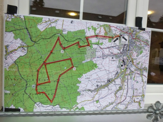Wie man mir schon gesagt hat, ist der erste Kilometer der schwerste, denn es geht aufwärts. Über die Holzstraße verlassen wir den Ort. Es geht vorbei am Stiefelknecht, einem Gasthaus. Der Name kommt nicht vom Schuhauszieher, sondern es war eine Wechselstation für Pferdefuhrwerke. Weil die Stelle die Form eines Stiefelknechts hat, nannte man sie auch so.
