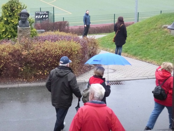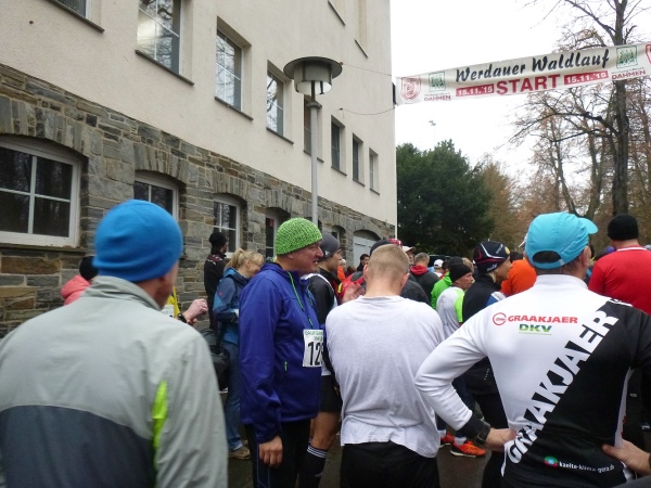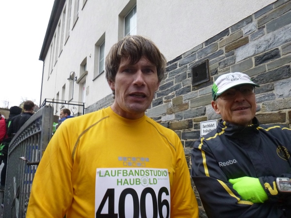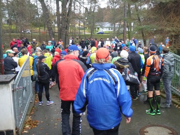 Dann geht es den Berg runter zur Sporthalle auf die Straße „An den Teichen“. Hier treffe ich auch wieder mal zwei Marathonsammler vom 100 Marathonclub Deutschland. Rene, unser Afrika-Spezialist und Ullrich der erst gestern einen 42er gefinisht hat. Es bleibt nicht viel Zeit zum Schwätzen, denn pünktlich um 11 Uhr erfolgt der Start.