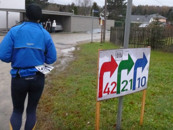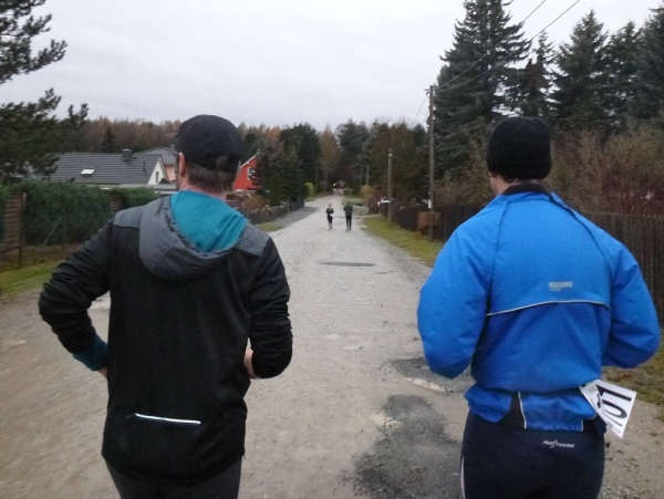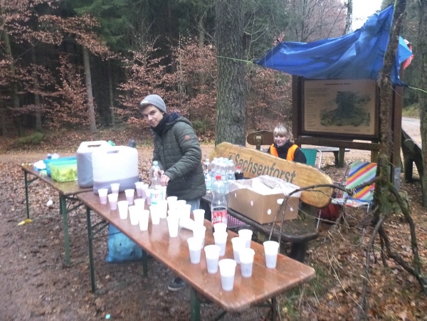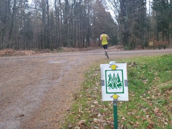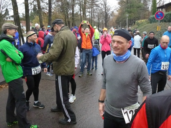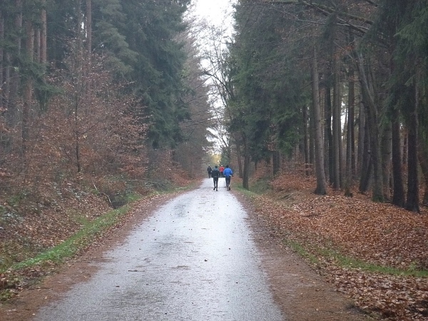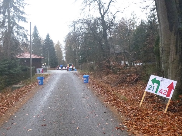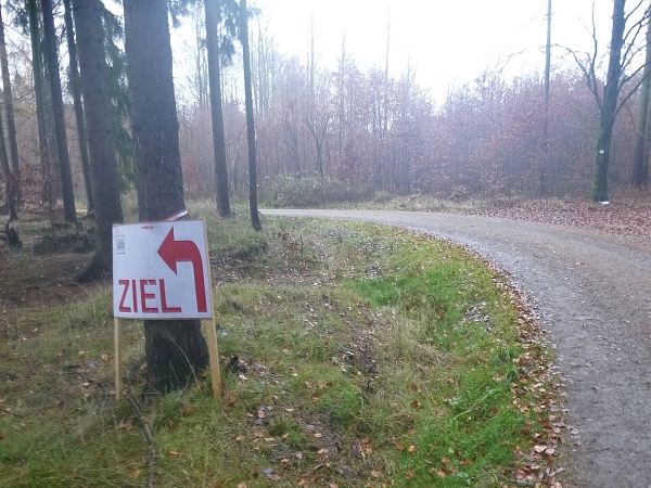 Ich gehe mehr, als dass ich laufe. Nur die Zeit rennt mir davon. Gut, dass es im Wald doch noch einigermaßen hell ist. Danke an die Streckenposten, die bei einsetzendem Nieselregen auf mich warten. Der eingangs erhoffte Rückenwind bleibt aus. Aber auch so schaffe ich den Hügel rauf zum Stiefelknecht, dann geht es abwärts zur Sportschule. Am Sportplatz wartet man mit dem Abbau der Zeitnahme, bis ich als Letzter durch bin. Trotz meiner halbstündigen Verspätung ist es noch nicht dunkel.