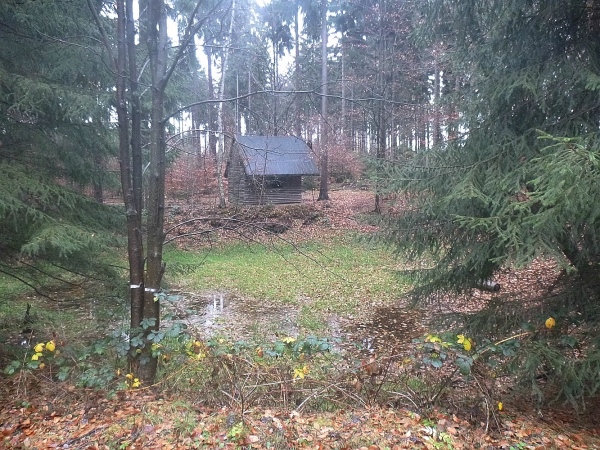 Der vorhergesagte Regen bleibt bisher aus. Es ist zwar nass und sehr dunstig im Wald, aber es regnet nicht mehr. Der Wald sieht jetzt schon grau in grau aus, als ob es gleich Nacht werden wolle. Ich denke an das Zeitlimit, das um 16 Uhr, also nach 5 Stunden, abläuft. Eben wegen der frühen Dunkelheit. Es gibt auch noch ein Zwischenlimit bei km 31,5 von 3:45 Stunden.