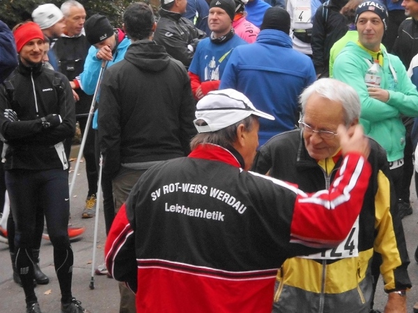 Vor dem Start treffe ich noch einen Läufer aus meiner Heimat, den Oschatzer Rainer Conrad. Der erzählt mir, dass er in der Starterliste meinen Namen gelesen hat. Aber dann dachte er, da gibt es wohl noch einen anderen Günter Schmidt. Einen, der für Marathon4you startet. Was so klang wie: Einen guten Läufer… Wir verabschieden uns gleich wieder, aber nicht deshalb. Eher vorsichtshalber, denn meist sehen wir uns nach Läufen nicht mehr - der läuft immer so schnell. Und genau das war richtig, in 03:58:15 Stunden wird er die AK 65 gewinnen.