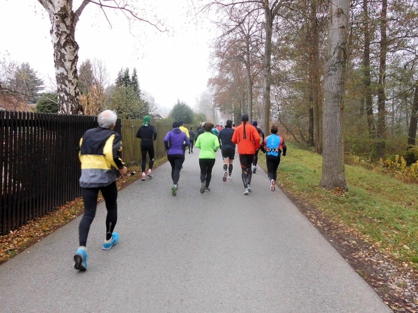 Es dauert gar nicht lange, da verschwindet die Läuferschar im Wald. Und wir sind noch keine 5 Kilometer gelaufen, da finden sich Hans-Joachim Meier und ich am Ende des Feldes wieder. Könnte vielleicht mal jemand auf uns warten? Wir sind gestern schon einen Marathon gelaufen! Das scheint keinen zu interessieren.