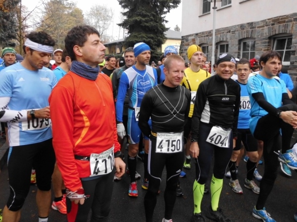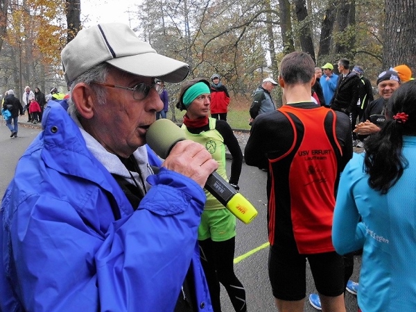 Am Start steht Jürgen Lange. Nun hoffe ich, dass jetzt keiner fragt: Und wer ist das? Mensch, das ist der Präsident des Rennsteiglaufvereins! Und der steht nicht nur am Start, der findet auch noch lobende Worte für die Veranstalter. Und als ob das nicht für einen Präsidenten schon genug ist, macht er sich auch noch selbst auf den Weg über die Marathon-Distanz.