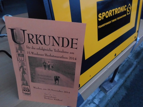 Das Problem ist, das man aus organisatorischen Gründen an der Startzeit nichts ändern kann. Am Zielschluss auch nicht, abends wird es nun mal dunkel… Aber ich habe Hoffnung, im kommenden Jahr auch Sigrid und Hajo wieder in Werdau treffen zu können. Die Zielzeiten der letzten Läufer sagen aus, die Veranstalter haben nicht nur ein Auge zugedrückt, sondern zwei – und vielleicht sogar noch ein Hühnerauge…