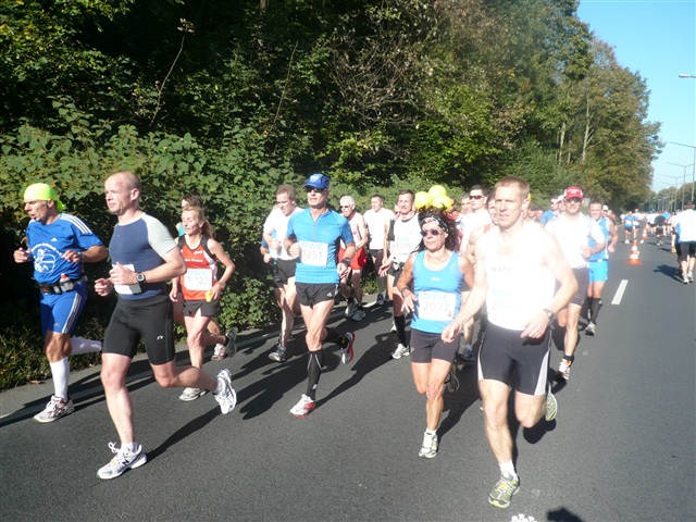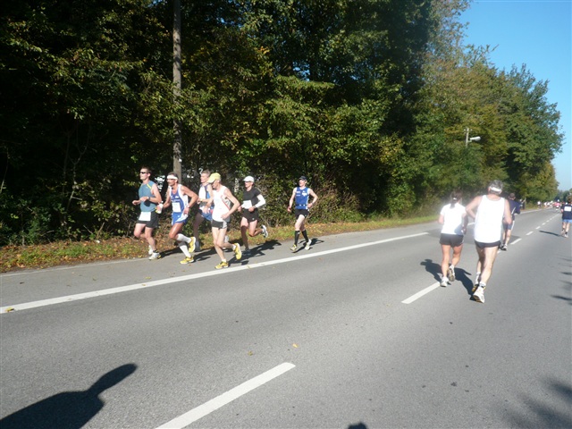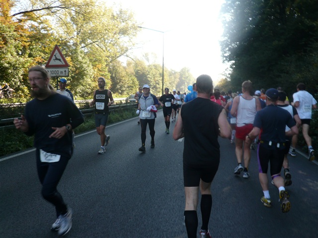 Das interessiert mich auch in Bezug auf meine heutige Leistungsfähigkeit. Der zweite Marathon innerhalb von 8 Tagen vor drei Wochen in Karlsruhe hat mich merklich Substanz gekostet; offensichtlich bin ich keiner, der ohne weiteres jede Woche einen Marathon verträgt, jedenfalls habe ich seitdem irgendwie müde Beine. Ich will heute versuchen, mit einem guten Gefühl knapp unter den vier Stunden zu bleiben. Sollte mir das nicht gelingen oder nur mit unverhältnismäßig hohem physischen Einsatz, werde ich ernsthaft über eine ein- oder zweiwöchige Laufpause nachdenken müssen.