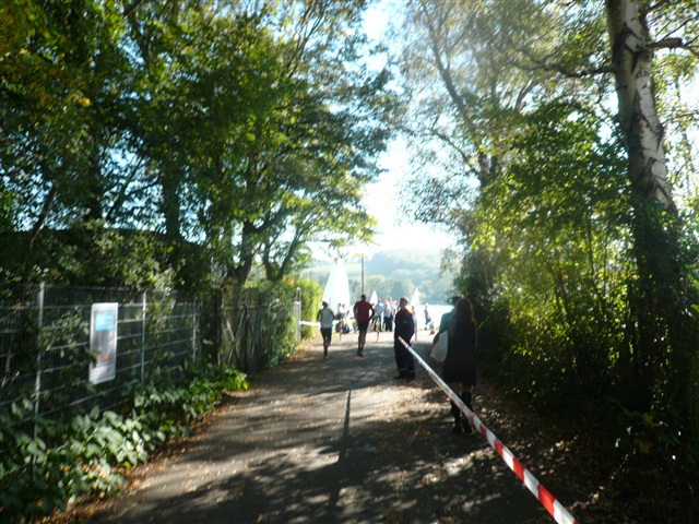 Unsere Laufstrecke wird auch von Spaziergängern und Radfahrern genutzt, die sich wohl nicht aussperren lassen. Natürlich ist dieser schöne See vermutlich DAS Essener Naherholungsgebiet und entsprechend frequentiert. Unangenehm wird es nur, wenn tumbe Radfahrerrentner vom Format 105 kg meinen, sich den Weg durch Geklingel, Geschrei und böse Worte freidrängeln zu müssen. Was aber nicht klappt, da die Läufer tapfer dagegen halten. Dies ist aber sicher nur ein Einzelfall, denn viele halten sich vorbildlich am Rand auf, schieben die Räder und überlassen die optimale Strecke uns.