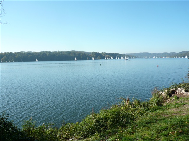 Bei km 5 ist am gegenüberliegenden Nordufer auf einer bewaldeten Anhöhe die traumhaft schöne Villa Hügel zu sehen. 1873 von Alfred Krupp errichtet, war sie mit 269 Zimmern auf 8.100 m² Nutzfläche in einem 28 ha großen Park Wohn- und Repräsentationshaus der Industriellenfamilie Krupp. „Flink wie Windhunde, zäh wie Leder, hart wie Kruppstahl.“ So wünschte sich schon im angeblich 1000jährigen Reich ein gewisser Herr die Jugend. Hier und heute erweisen sich die Jungen als flink, die Alten als zäh und hart sind letztlich alle. Tolle Hechte sind wir miteinander.