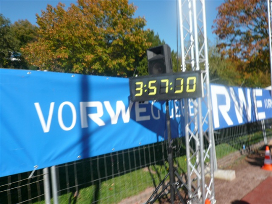 Was soll ich über den Rest sagen? Ich werde langsamer, haue aber rein, was geht und rette mich von km zu km. Bei etwa km 35 fällt die Entscheidung: Ich werde so schnell keinen Marathon mehr laufen und mir eine mehrwöchige, vielleicht –monatige Marathon-Auszeit gönnen. Ich muß mit Spaß auch noch auf der zweiten Hälfte unterwegs sein und möchte einen befreienden Zieleinlauf genießen. Beides ist augenblicklich nicht drin. Leider. Aber ich muß ehrlich zu mir sein. Ich bin ganz klar keiner derjenigen, die Woche für Woche Marathons am Fließband abspulen können. Und da ich auch noch mit 70 ankommen will, kann ich es mir nicht erlauben, mich sauer zu laufen.