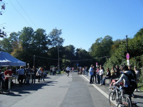 Lange Zeit geht es direkt am ehemaligen Freibad vorbei, dass 1959 seinen höchsten Zulauf mit sage und schreibe fast 330.000 Badegästen verzeichnete. Wenn man bedenkt, dass es damals kaum Individualverkehr gab, müssen es rosige Zeiten für den jetzt permanent von der Pleite bedrohten öffentlichen Nahverkehr gewesen sein.