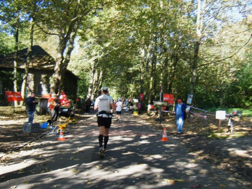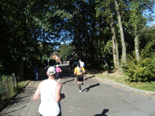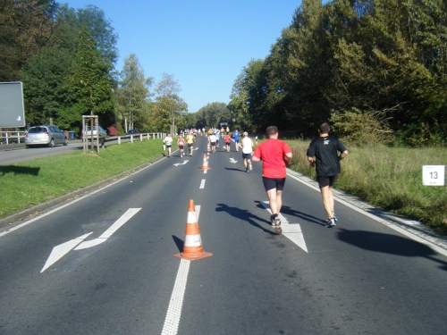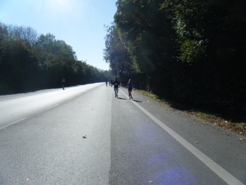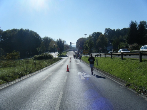Wenige Meter danach ist es wieder einsam an der Strecke. Das Feld ist jetzt nach etwa 20 Kilometern schon recht weit auseinander gezogen. Außer einigen wenigen Spaziergängern sind nur wir Läufer unterwegs.
