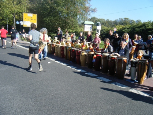 Nach den sechs Kilometern der Wendepunktstrecke geht es wieder zurück ans Seeufer. Hübsche Reihen- und Einfamilienhäuser säumen meinen Weg. Vereinzelt haben sich Nachbarschaften zusammen gefunden und nehmen an Stehtischen ihr Frühstück in meist flüssiger, goldgelber Form zu sich. Entsprechend gut ist die Stimmung auf und an der Strecke.