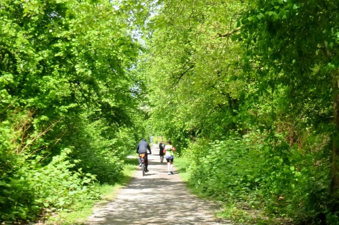 Solche Trassen haben ja was Besonderes an sich, Gefälle und Steigung sind minimal. Die armen Dampfloks konnten einfach nicht steil. Dem Adhäsionsbetrieb sind da Grenzen gesetzt, physikalische. Für den modernen Radler ist das sehr angenehm, für den Läufer schier endlos. Zu flach zum Gehen, aber für den Dauerlauf brauchts viele, viele Körnchen…