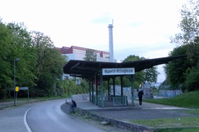 Noch 7 km durch Wuppertal, besser gesagt über die Dächer. Denn diese Trasse (seit Schee die Kohlenbahn, ab Wichlinghausen die Nordbahn) läuft flach oben am Hang, mit noch drei Tunneln und vielen Viadukten. Es dämmert inzwischen, die Streckenbeleuchtung zündet. Nur sehr wenige Spaziergänger begegnen mir noch. Michael habe ich vorausgeschickt, wenigstens er soll vor Zielschluss finishen. Für mich habe ich leise Zweifel.