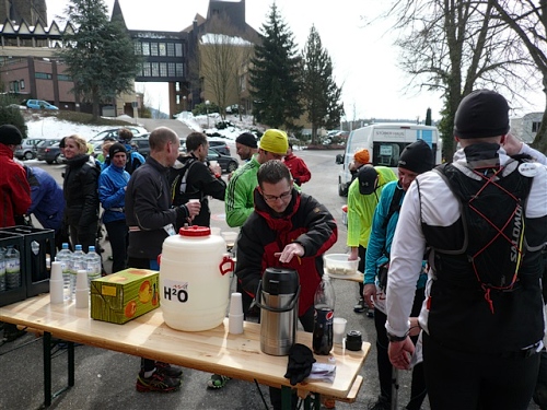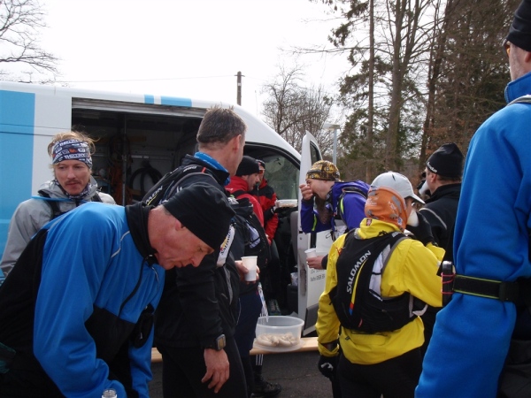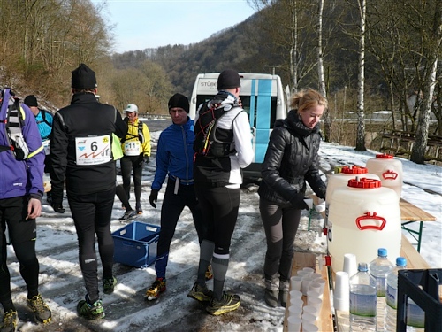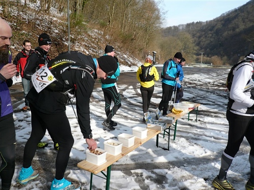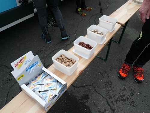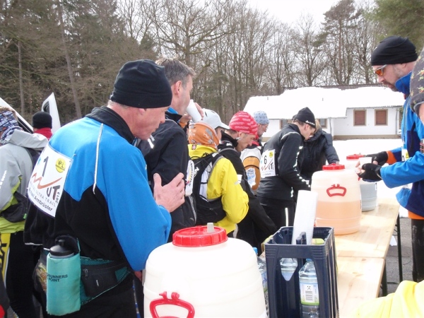 Verpflegungspunkte an den einzelnen Etappenorten Teilweise eine weitere auf einzelnen Etappen und im Ziel; geboten werden Tee (warm), Kaffee, Iso (warm), Wasser, Apfelsaft, Riegel, Äpfel, Bananen, Rosinen, Nüsse und Kekse