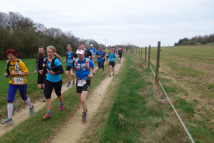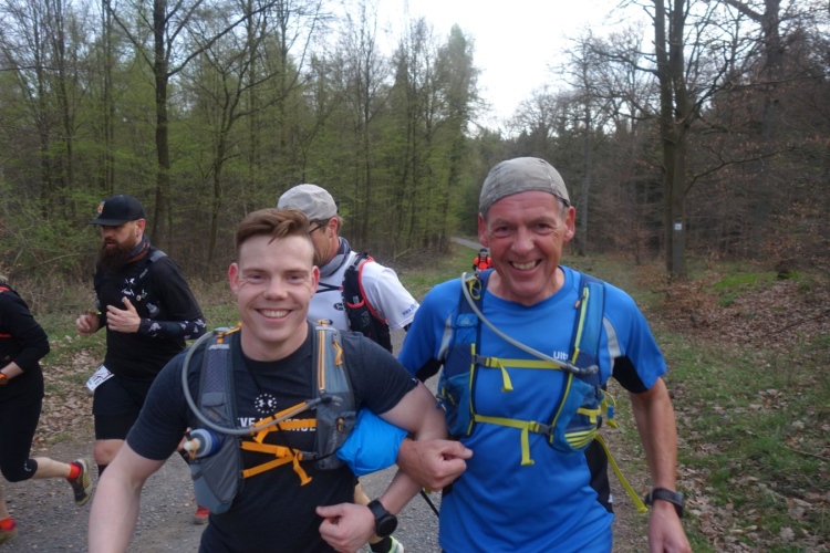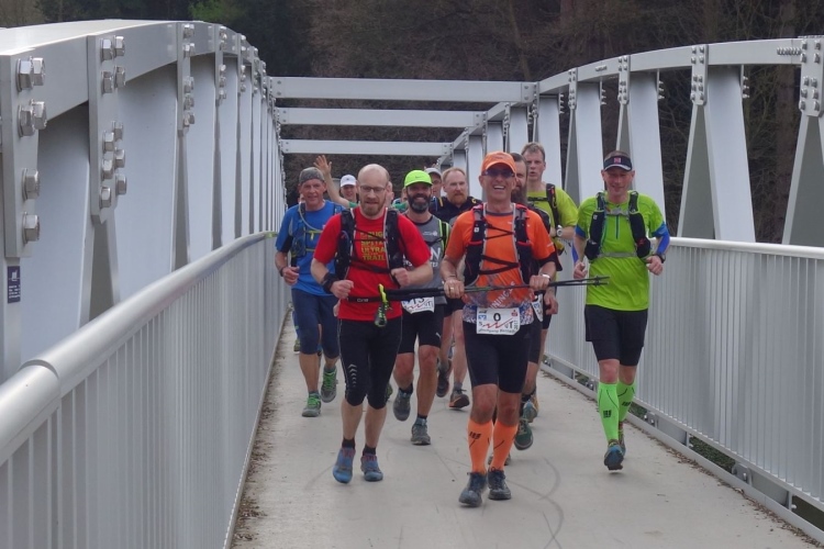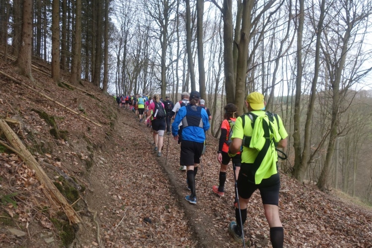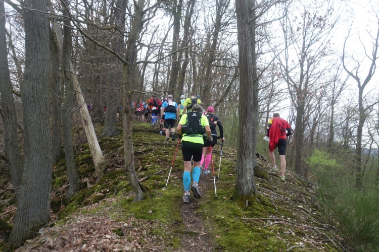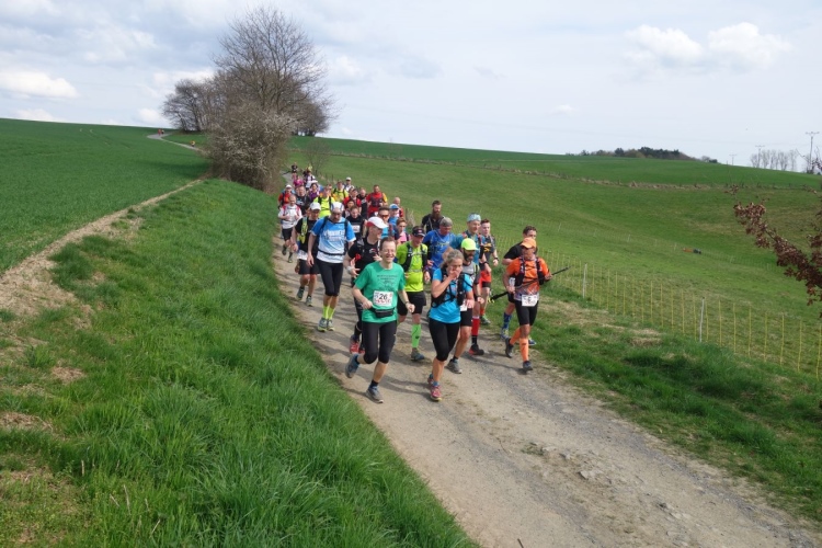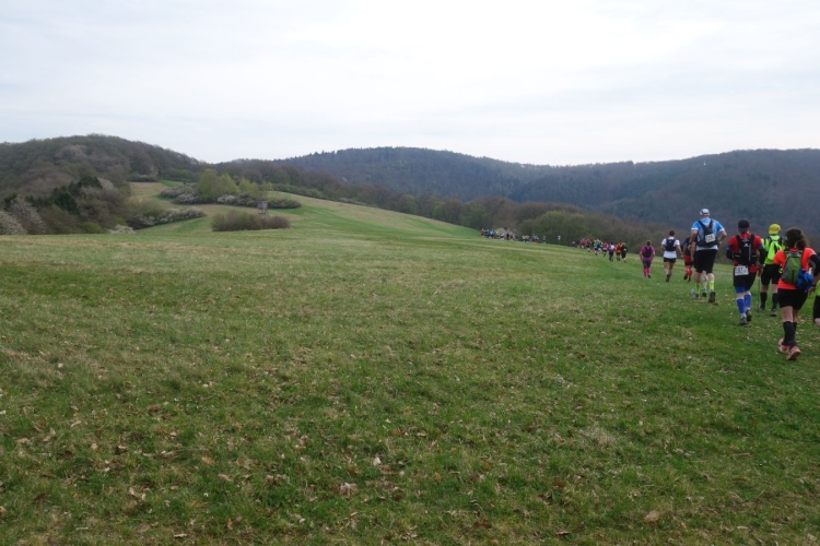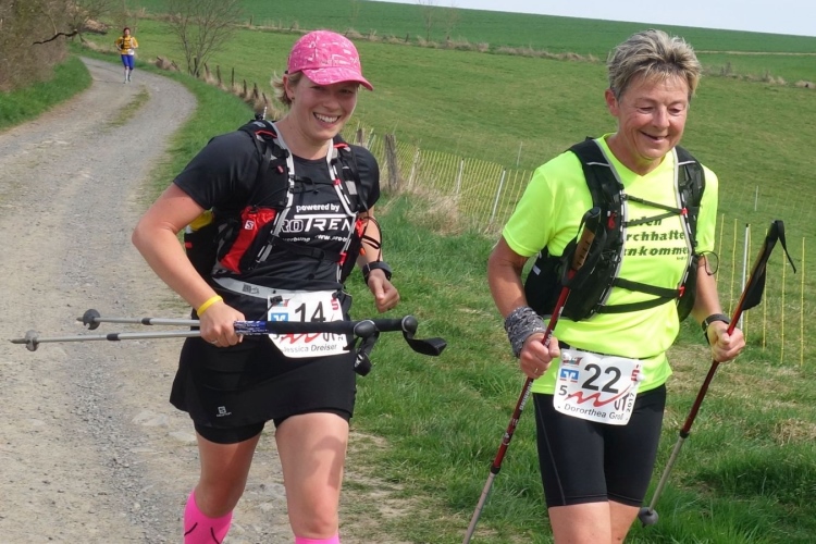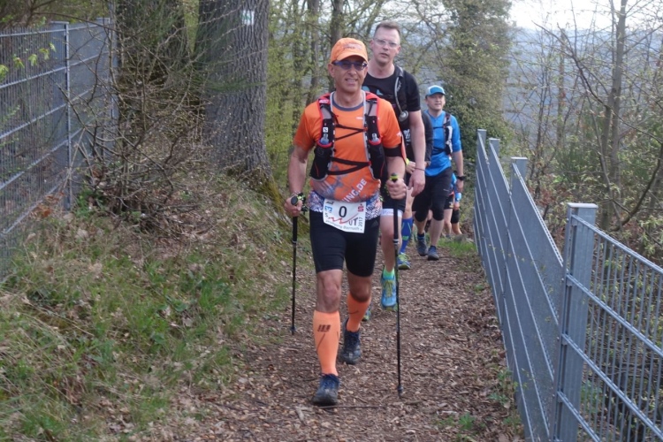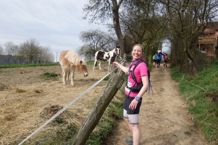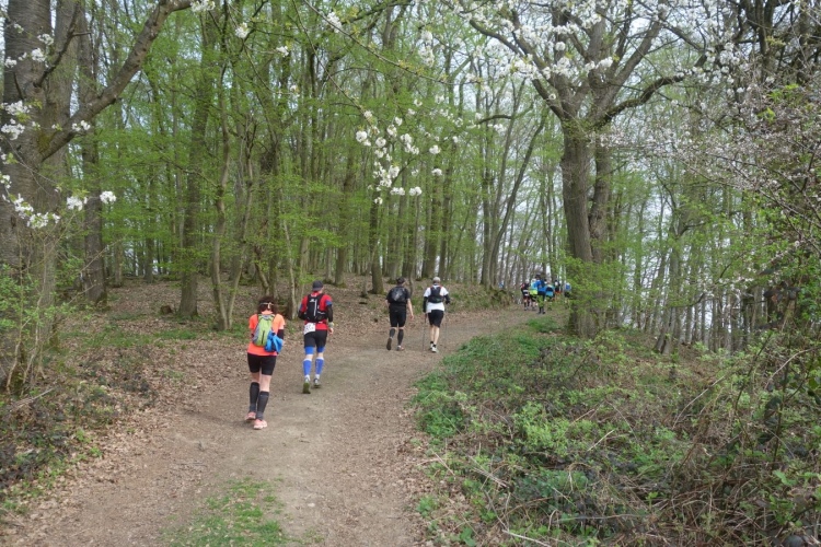 Über weite Wiesenflächen laufen wir auf der Höhe dem zweiten VP am Kloster Marienhaus entgegen. Hier haben Elke, Josef und weitere freundliche Helfer wieder ein kleines kulinarisches Paradies für uns aufgebaut. Der Renner sind die gekochten Kartoffel. In Salz eingetunkt kann nicht nur ich nicht genug davon bekommen. Alle greifen zu und freuen sich über die Pause. Ich nutze diese um meinen Rücken zu dehnen. Der fängt wieder an mir Schmerzen zu bereiten. Aber aussteigen ist nicht. Ich laufe durch. Den Spaß heute will ich mir durch den Rücken nicht verderben lassen.