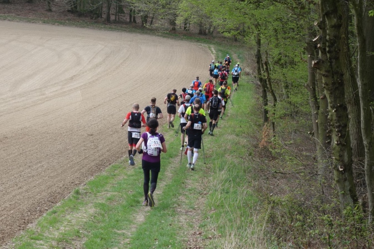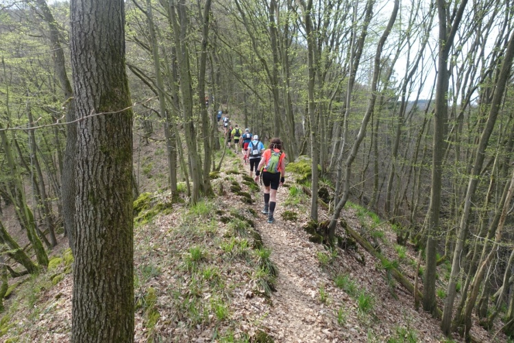 Gut 28 Km sind geschafft, vor uns liegt die dritte Etappe über 14 Km. Wolfgang läßt uns wieder antraben. Wir folgen weiter dem Klosterweg. Eine Teilnehmerin stürzt, es ist aber nichts passiert und sie läuft weiter.