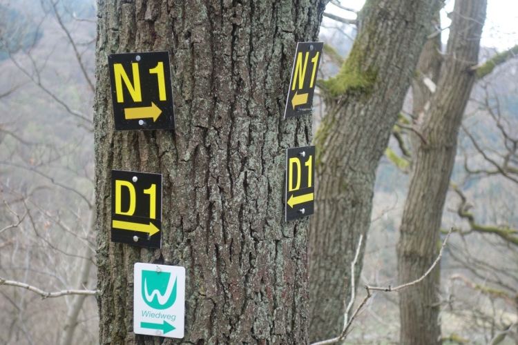 Wir sind auf dem Wiedweg unterwegs. Der Weg ist weiterhin sehr abwechslungsreich. Mal breit, mal schöner schmaler Pfad. Und stets Auf und Ab. Warum nur bin ich fast immer am Ende des Feldes? Gut, dass Wilhelm mir Gesellschaft leistet.