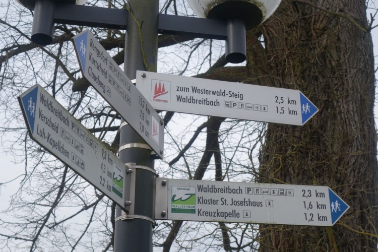 Wir kommen nach Waldbreitbach. An einem kleinen Weiher heißt es Abschied nehmen von denjenigen die hier aus dem WUT aussteigen. Es spielen sich herzzerreißende Abschiedsszenen ab. Aber es geht weiter für die leicht dezimierte Truppe. Wir verlassen Waldbreitbach und laufen in Richtung Bärenkopp.