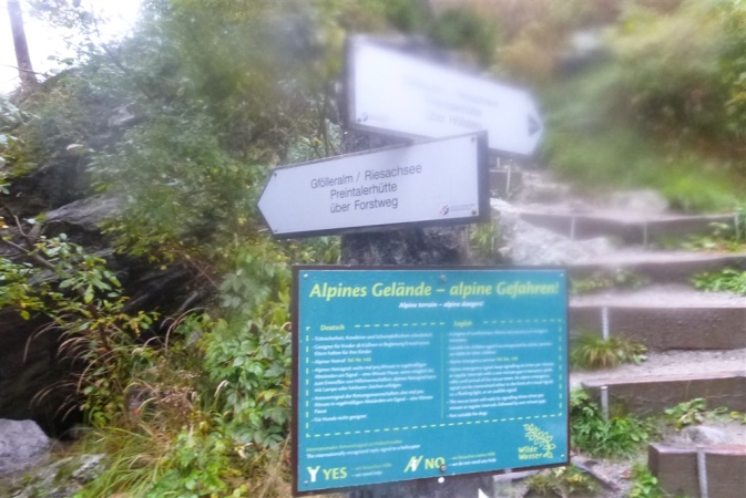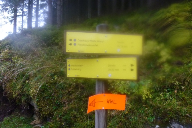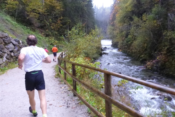 Wenn Elke und ich für zwei Wochen verreisen, ist das, ohne zumindest einen anständigen Lauf mitzunehmen, kaum vorstellbar. Und wenn man schon mal da ist, kann man doch evtl. auch noch einen zweiten…? Entsprechend durchforsten wir den österreichischen Laufkalender und werden tatsächlich fündig: Hart am Rande der Steiermark zum Bundesland Salzburg hin in Schladming hat man vor wenigen Jahren einen neuen Erlebnis-Wanderweg ausgewiesen und mit erheblichem Aufwand hergerichtet. Von Schladming ausgehend, führt er 14 km lang und 610 Höhenmeter hinauf durch die Talbachklamm, vorbei an der alten Gföllermühle, den Naturschutzgebieten Toteisboden und Tettermoor, zum Riesachfall, dem höchsten Wasserfall der Steiermark, dann entlang des Alpinsteiges über Treppen und Brücken durch die Höll zur Gfölleralm am Riesachsee.