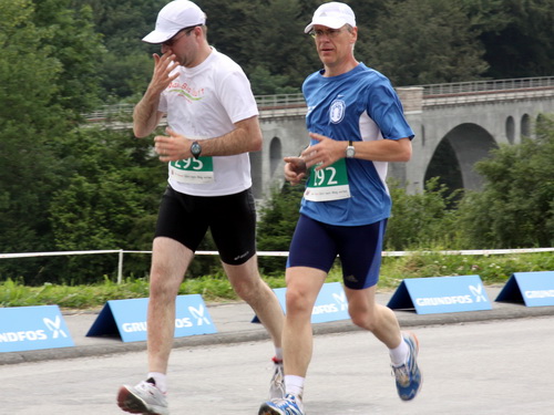 Der höchste Punkt ist erreicht, es geht abwärts. Langsam muss ich mich von der Hoffnung verabschieden, den einen oder anderen schwächelnden Marathoni einzuholen, um die Rote Laterne loszuwerden. Auf Cornelia kann ich da nicht zählen. Sie schaut eben zur Uhr, rechnet sich aus, dass sie unter 5 Stunden bleiben kann und gibt Gas. Nicht dass mich der Gedanke belasten würde - aber bis heute war ich niemals Letzter. Dass ich nicht einen Läufer, eine Läuferin überholen kann, ist neu. Haile Gebrselassie passiert das bei fast jedem Rennen.