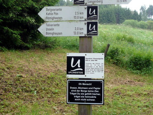 Wenig später erreichen wir die Diemelquelle (km 11,5). Kaum zu glauben, aber das unscheinbare Rinnsal schlängelt sich 110 km durch die Landschaft und ist neben Fulda und Werra einer der Quellflüsse der Weser.
