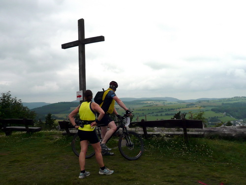 Beim Biathlonstadion können wir uns stärken, dann geht es bergauf und wir sind oberhalb des Ortsteils Usseln. Bei der Ferienhaussiedlung ist die Holländische Flagge gehisst. Das Sauerland ist traditionell ein beliebtes Urlaubsgebiet der Oranjes und mittlerweile bevölkern sie nicht nur die Campingplätze, sondern belegen auch ganze Hotels und Gasthöfe.