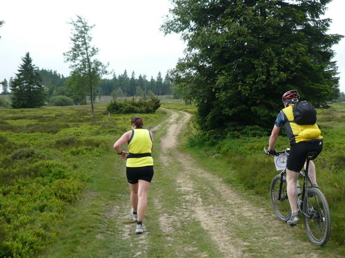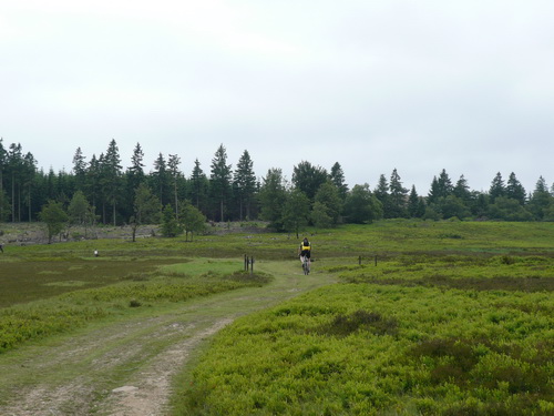 An der Hochheidehütte gibt es erneut Verpflegung (wie immer Wasser, Iso und Bananen) und Applaus von der gut besuchten Terrasse. Mir gefällt dieser Streckenabschnitt besonders gut und ich bereue die lange Anreise hierher keinen Moment. Die nächsten sechs Kilometer verlaufen wellig immer auf einer Höhe von knapp 800 m.