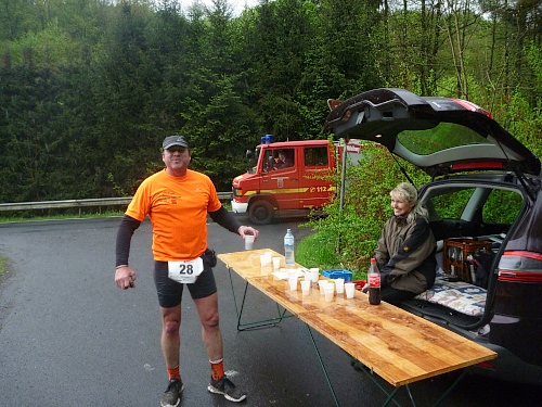 Unterwegs verpflege ich mich mit Cola und was ich ganz top finde: Apfelschorle! Damit kann ich fast so schnell laufen wie mit Bier, fast.