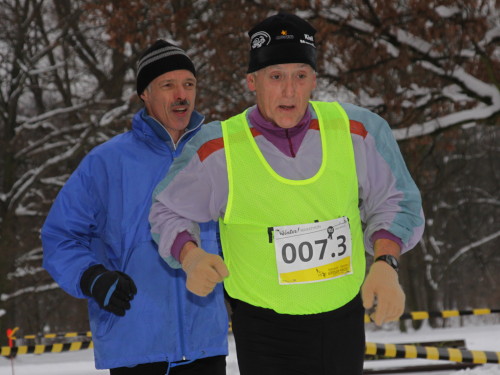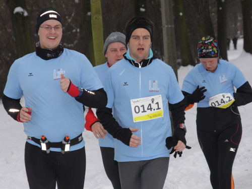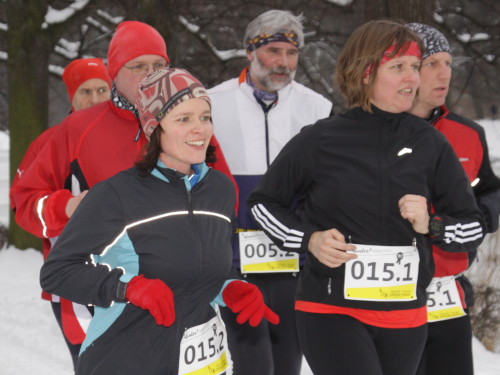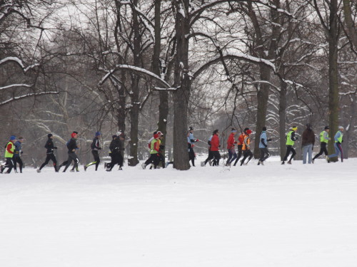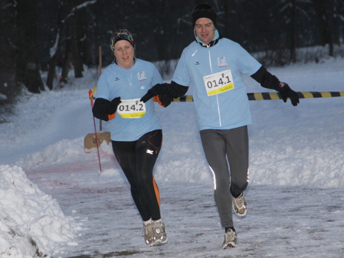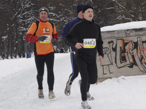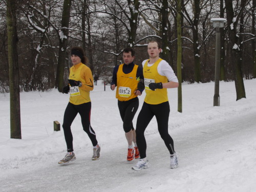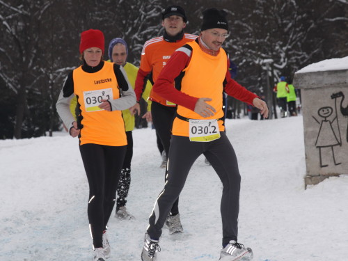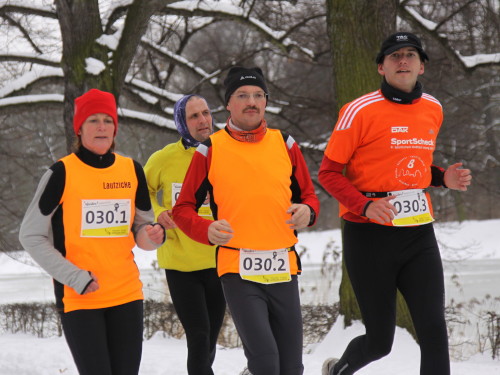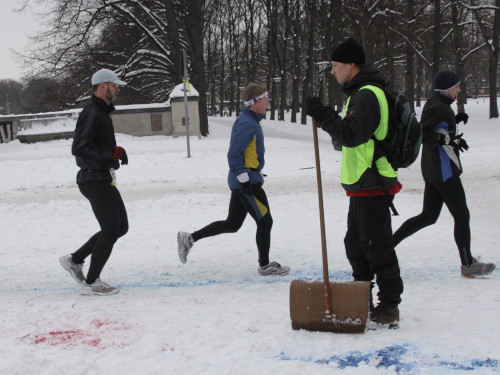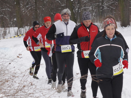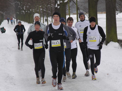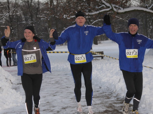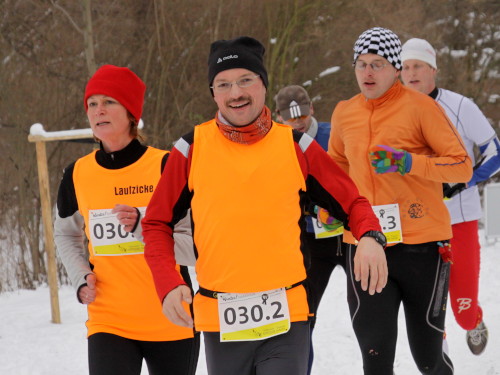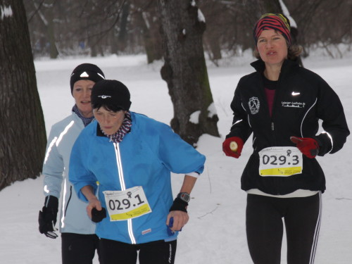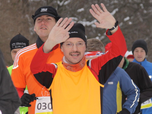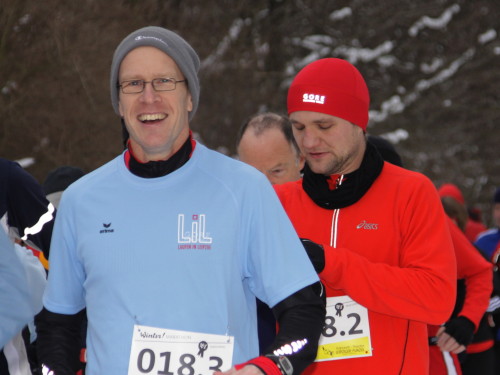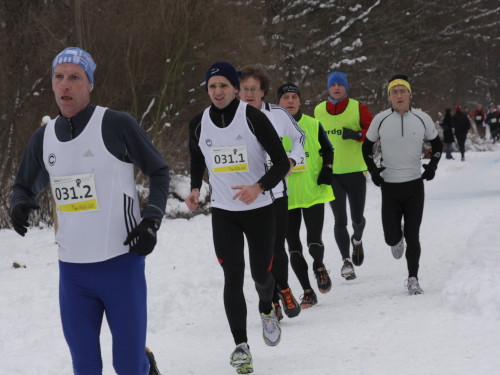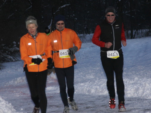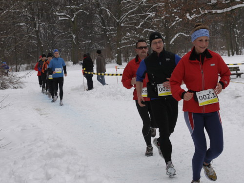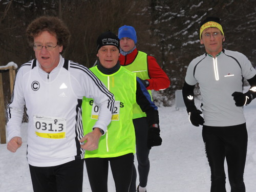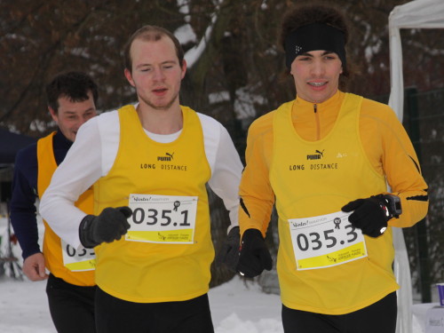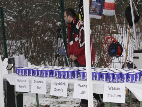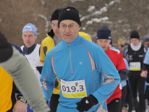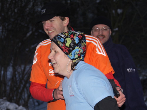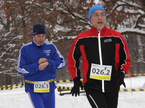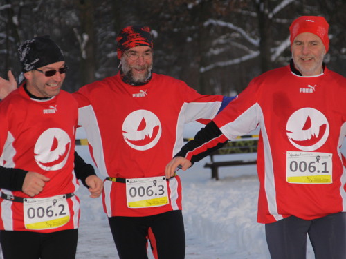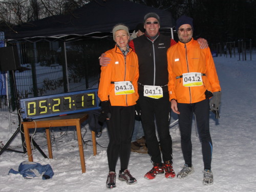 Unsere Strategie steht fest. Durch den tiefsten Schnee versuchen wir gar nicht mehr zu laufen, es wird Kraft schonend gegangen. Mit dem Zeitlimit (5:30 Stunden) sollten wir kein Problem bekommen. Eher schon mit meiner Kondition. Seit Florenz Ende November bin ich nur einmal 2 Stunden gelaufen, sonst nur 40 Minuten, max. 70. Daher nehme ich mir, nachdem ich die Strecke jetzt kenne, 5 Runden vor. Danach würden mir wohl meine Teamgefährten einen ehrenvollen Ausstieg gestatten.