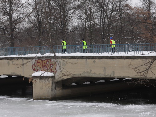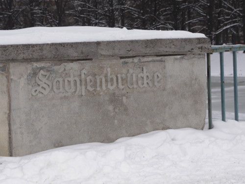 Zuerst dachte ich ja, das Gewässer, das wir mehrfach überqueren, sei die Weiße Elster. Elster ist schon mal nicht schlecht, aber es ist nicht der Fluss, sondern das Flutbett. Hierher werden die Wassermengen umgeleitet, die das eigentliche Flussbett nicht aufnehmen kann. So können Hochwasser verhindert werden. Im Sommer trainieren die Kanuten auf dem ruhigen Wasser, im Winter kann man Schlittschuhlaufen. Im Bereich hier gibt es allerdings zurzeit keine geschlossene Eisdecke.