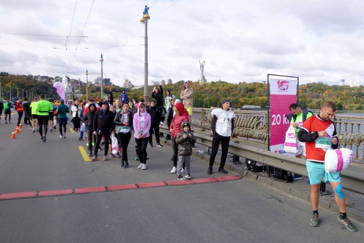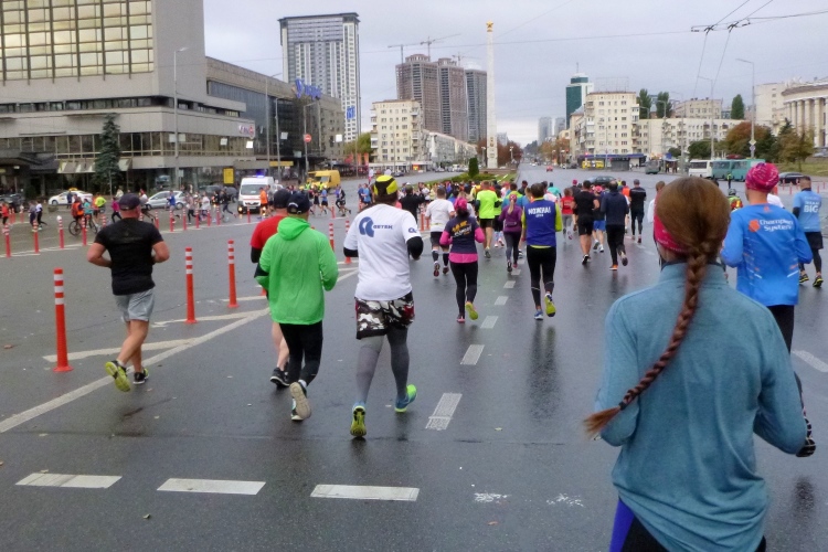 Der Kiew-Marathon ist ein sehr schöner, abwechslungsreicher Stadtmarathon mit Innenstadtanteilen, Wohngebieten, Parks und dazwischen ein paar Schnellstraßen. Die vier Dnepr- Brücken mit ihren Ausblicken sind eine Wucht und die Durchquerung der Mutter-Heimat-Gedenkstätte sucht ihresgleichen. Höhentechnisch sind ca. 250 Meter zu bewältigen, viele davon eher steil. Fünfmal gibt es Musik. Das Zuschauerinteresse ballt sich an einigen Stellen.