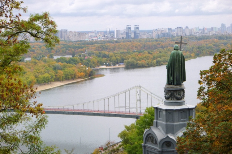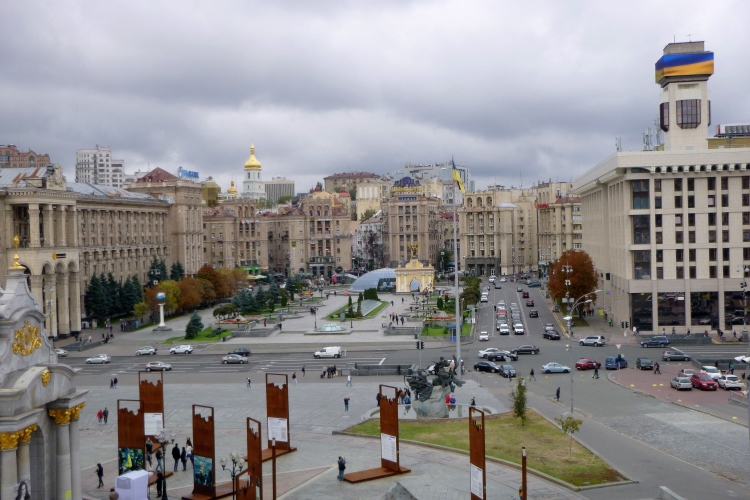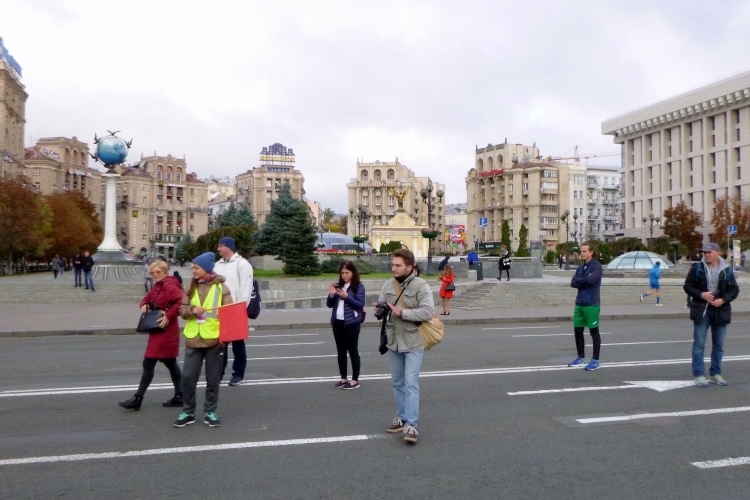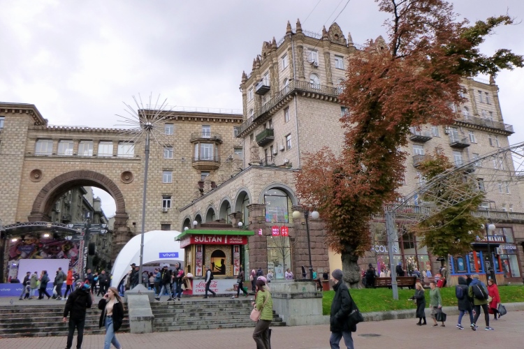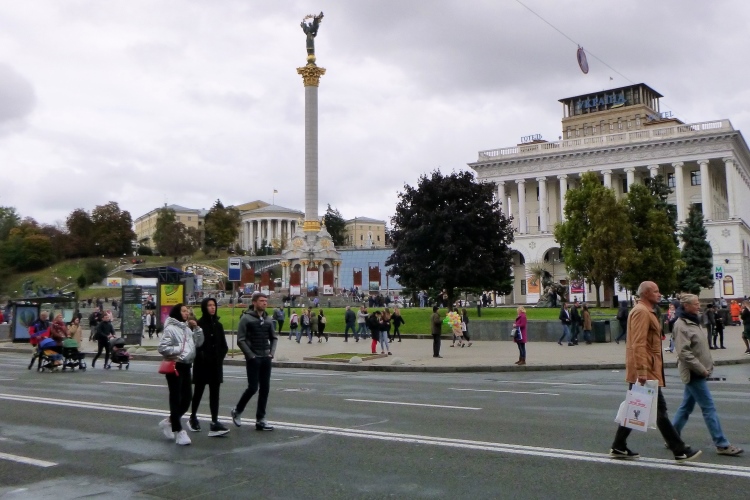 Es geht am Majdan-Platz vorbei, dem Unabhängigkeitsplatz. Er erlangte im Jahr 2013 in der Folge der Euromajdan-Proteste internationale Bekanntheit. Präsident Janukowitsch wollte die Ukraine näher an Russland binden, die Bevölkerung aber zur EU gehören. Während der Unruhen wurden über 100 Demonstranten getötet, an die viele Gedenktafeln erinnern. Die Reporter berichteten aus dem großen Hotel „Ukraina“, das sich hier befindet. Als Folge der Proteste besetzte Russland die Krim mit ihren Kriegshäfen und die ostukrainischen Gebiete. Der Präsident trat zurück und der Assoziierungsvertag mit der EU wurde unterschrieben. Das Hotel Ukraina gilt als touristischer Geheimtipp, wenn man denn ein Zimmer ergattern kann.