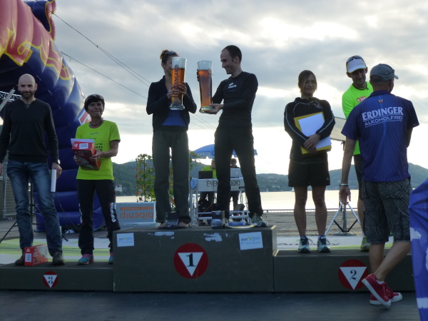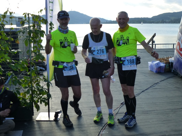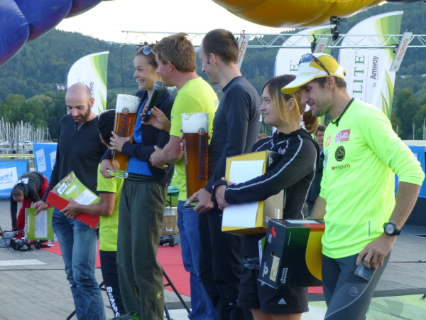Aber die Show ist längst noch nicht zu Ende. Kurz vor 17 Uhr füllt sich die Tribüne mit immer mehr Menschen. Denn es gilt, den letzten Einläufer zu begrüßen, der es vor dem Cut off um 17 Uhr ins Ziel schafft. Der Zielmoderator heizt die Stimmung an und als dann tatsächlich der Letzte einläuft, weiß der im allgemeinen Jubelsturm wahrscheinlich gar nicht so recht, wie ihm geschieht. Auch die gleich anschließende Siegerehrung für alle Läufe und Altersklassen ist von einer ausgelassenen Stimmung getragen, wie ich es selten erlebt habe. Wörthersee – ich komme wieder!