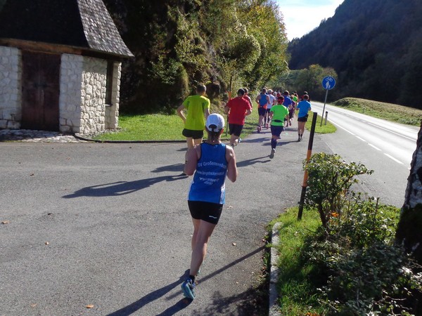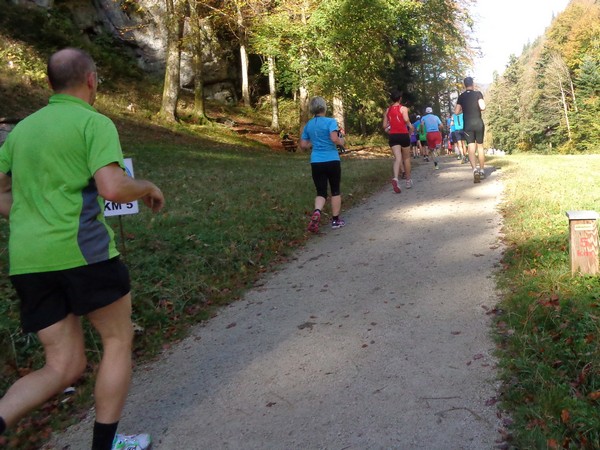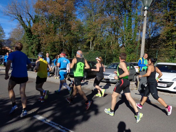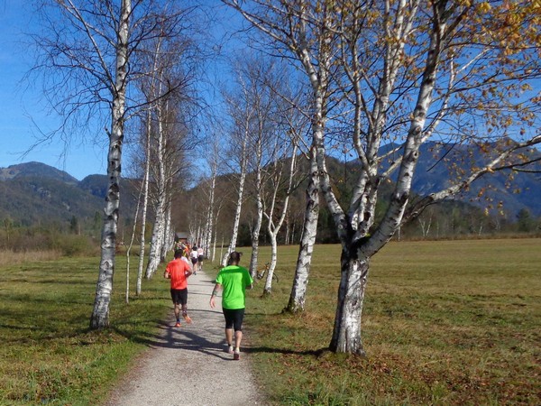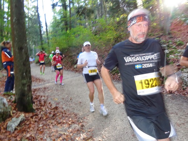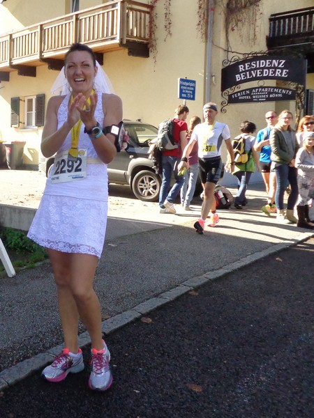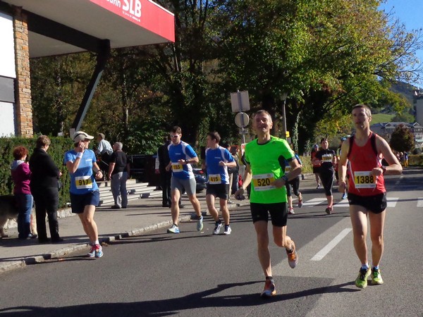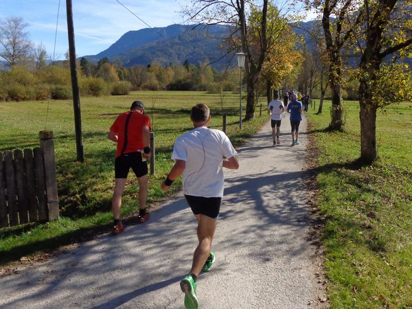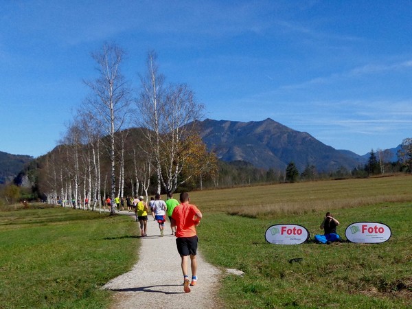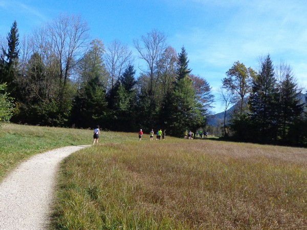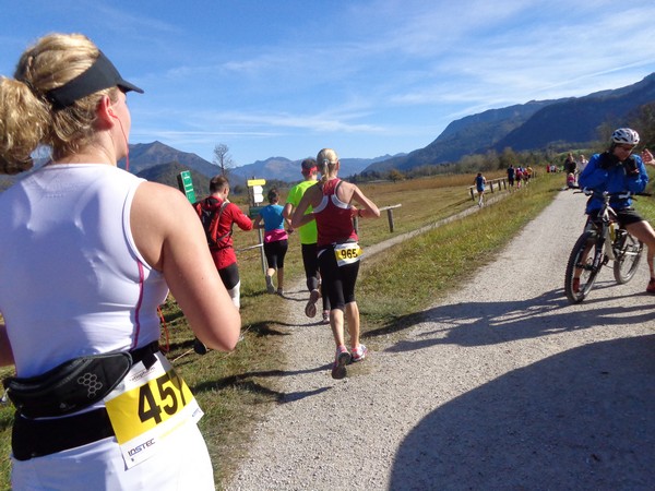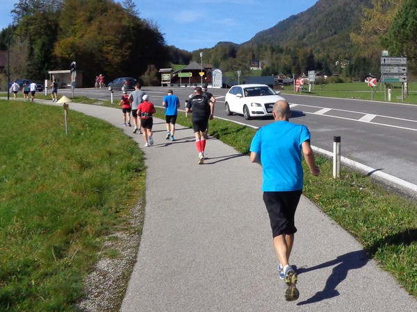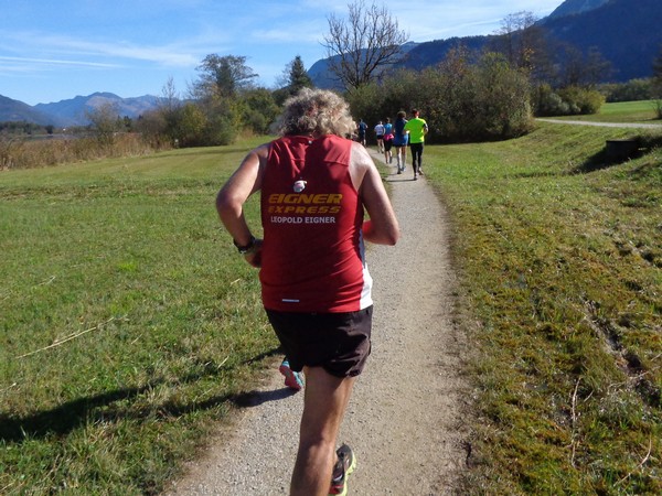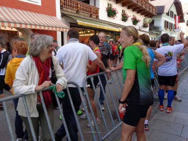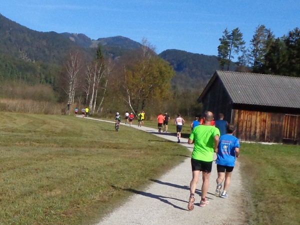 Heuer ist es für mich ein neues Lauferlebnis, weil so viele andere unterwegs sind. 2013 am Ende des Marathonstarterfeldes gab es da und dort noch vereinzelt Läufer, heuer laufe ich im Pulk und habe abgesehen von der schönen Landschaft somit viel mehr Fotomotive. Wie ich hören kann, kommen viele von weit her, alle möglichen Sprachen kommen mir unter. Ungarisch, polnisch, englisch, südtirolerisch …