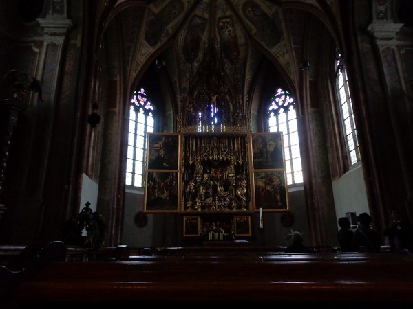 Irgendwie hat es die Bergwacht wieder geschafft, einen Geländewagen hier herauf zu bringen. Es wird flacher. Hier heroben hat im 10. Jhdt. der heilige Wolfgang ein paar Jahre als Einsiedler gelebt, die Fundamente seiner Klause wurden bereits gefunden. 400 Jahre später war hier eine der bedeutendsten Wallfahrtsstätten Europas, ab dem 17. Jhdt. gab es eine bewirtschaftete Pilgerraststätte. Archäologen haben bereits Rekonstruktionen davon erstellt und es wird weiter geforscht. Zahlreiche Glasgefäße, die zur Einsiedelei gehörten, sind schon im Museum.