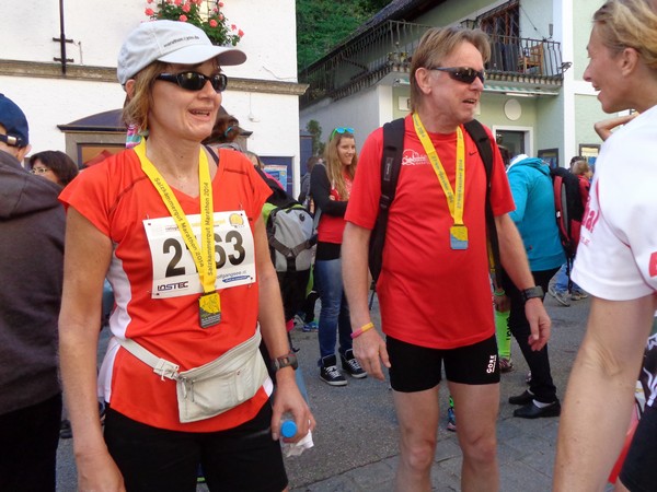 Wenig später wird vom Sprecher der soeben ankommenden Frau Dr. Susanne Schöberl zu ihrem 100. Marathonfinish gratuliert. Das machen Willi, Evi und ich natürlich auch prompt. Unser Zimmer im „Weißen Bär“ dürfen wir noch zum Duschen nutzen. Da wir uns sehr wohlfühlen in St. Wolfgang bleiben wir gerne etwas länger.