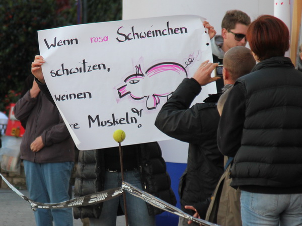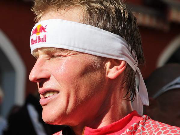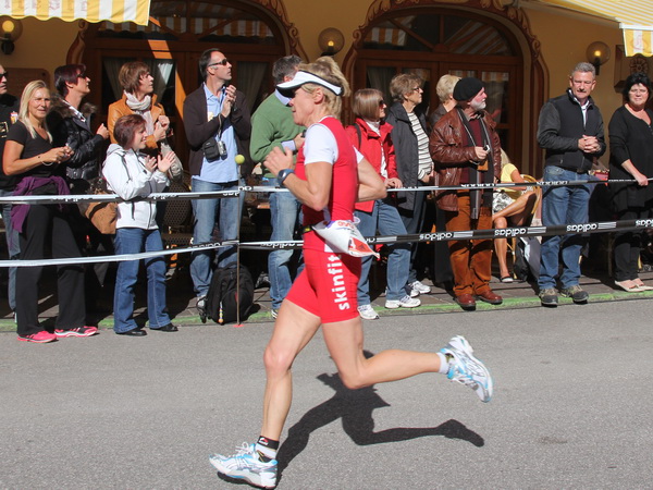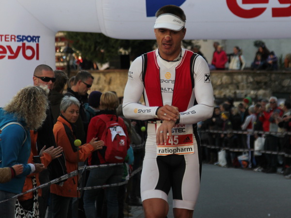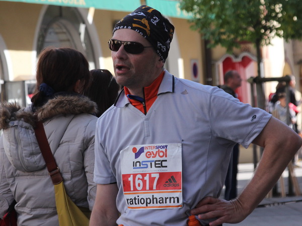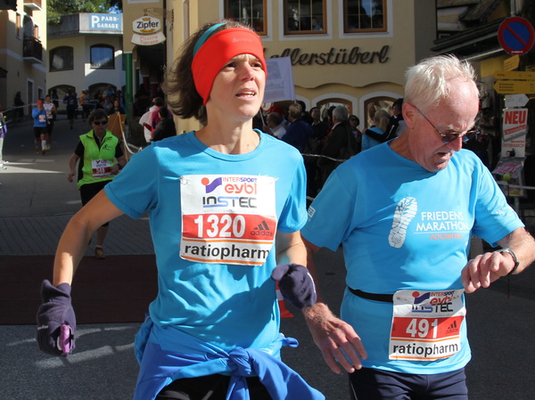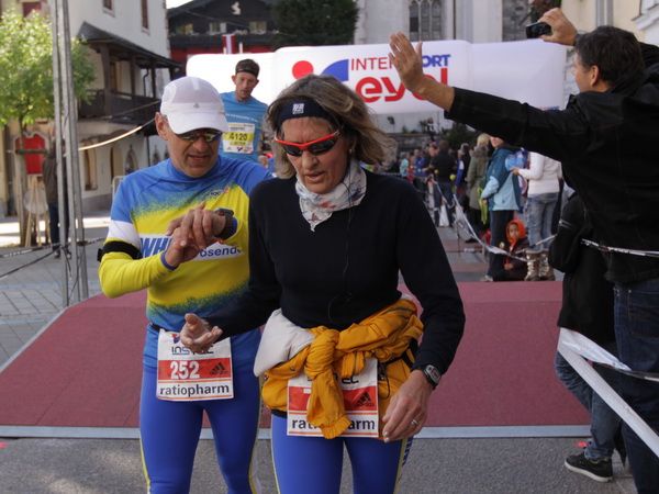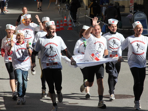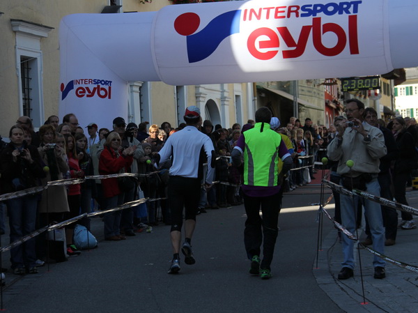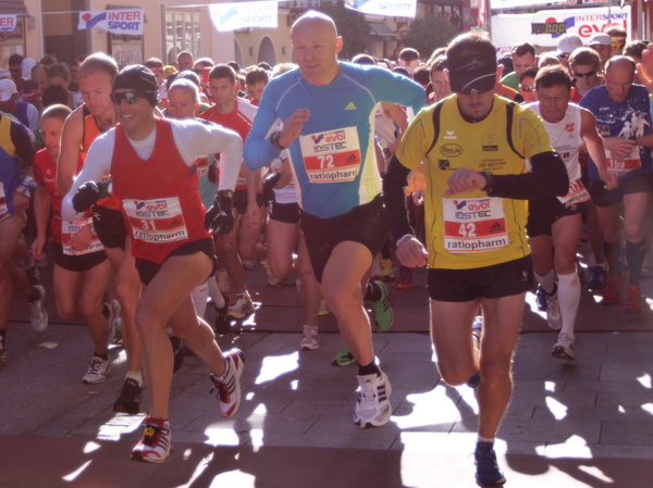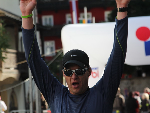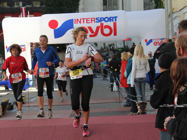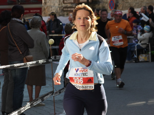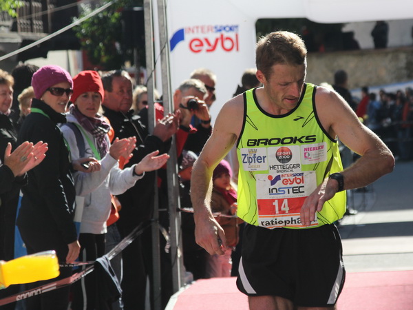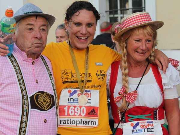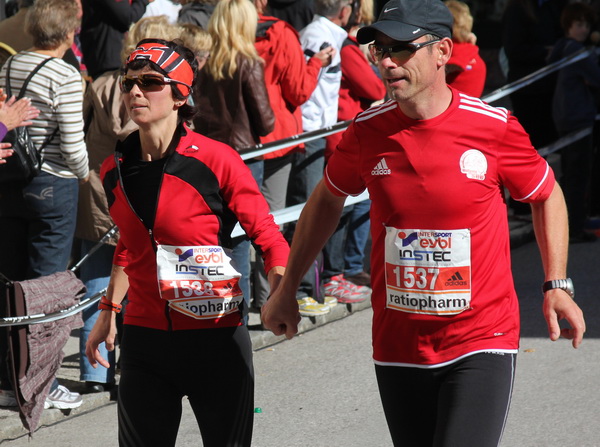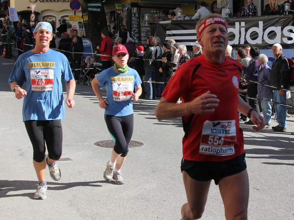 Ich renne auf den Balkon und schaue auf die Strecke. Nicht abgekämpft oder auf dem Zahnfleisch kommt der Erich aus Wien daher, sondern quitschvergnügt, aber humpelnd. Er ist verletzt und hat sich trotzdem durchgebissen. Das gibt Sympathiepunkte und spornt die vielen Zuschauer zu noch mehr Applaus an. Dankbar verneigt er sich und genießt die tolle Atmosphäre. Glück für ihn, dass ich gekniffen habe. Ich hätte ihm heute den Triumph streitig gemacht.