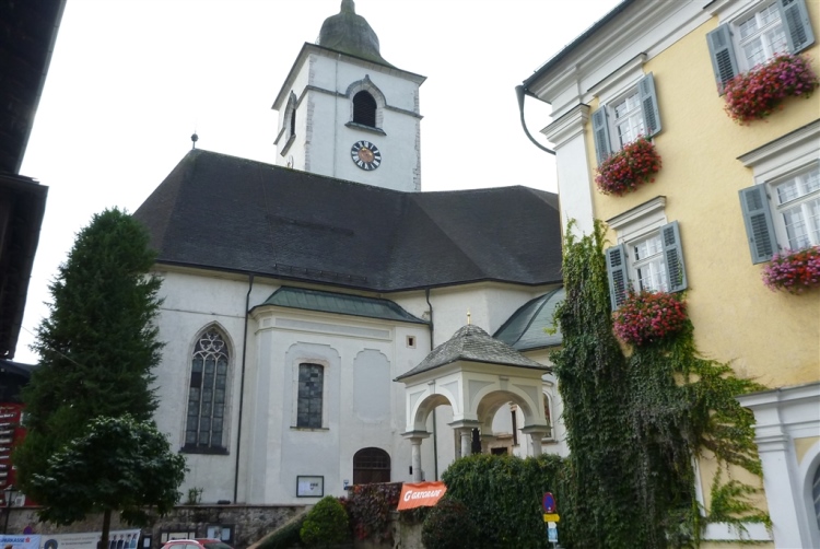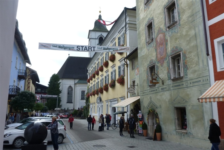 Das Feld der Läufer verteilt sich auf die Startorte, wir Marathoner fahren per Bus nach Bad Ischl, die Zehner per Schiff nach Gschwendt, die 5,2 km-Läufer nach Strobl. Für alle wird das Ziel an der Kirche in St. Wolfgang, nur hundert Meter entfernt vom „Weißen Rössl“ sein. Gibt es jemanden, der mit diesem Begriff nichts anfangen kann und der Hotel, Theaterstück, Operette von Ralph Benatzky und Filme (v.a. mit Peter Alexander von 1960) nicht kennt? Dem sei mit dem musikalischen Slash Hammer geholfen:
