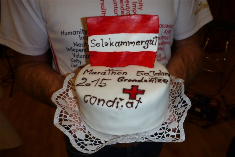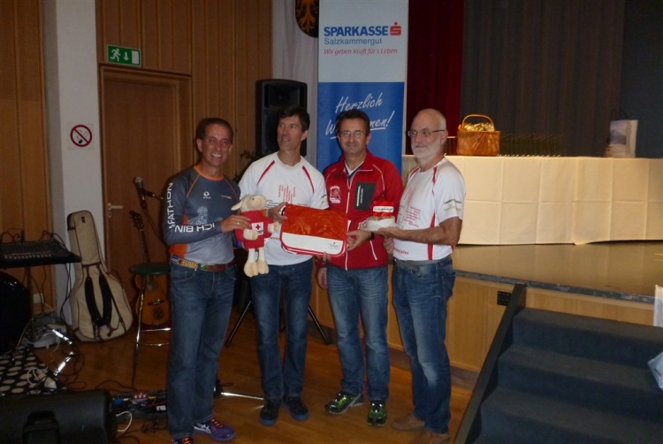 Am Samstag gibt’s ab 13 Uhr die Startunterlagen im Pacher-Haus in St. Wolfgang. Ein schönes Rahmenprogramm inkl. Lauftechnik-Check, Körperfettmessung, Pasta-Party, Live-Mucke und vieles mehr bilden v.a. am Abend den passenden Einstieg auf morgen. Wir treffen, fast wie bestellt, Kollegen Herbert Orlinger und Helmut Linzbichler nebst Gattin Brigitte. Küss die Hand. Zu spät erst wird mir klar, dass das ein ehemaliger Trans-Amerika-Läufer ist, dessen Buch über diesen Event ich zuhause (und auch aufmerksam gelesen!) habe. Vor lauter Quatschen vergessen wir leider ein gemeinsames Foto zu machen. Herbert ist bedauerlicherweise erkältet und hat auf den Panoramalauf umgemeldet.