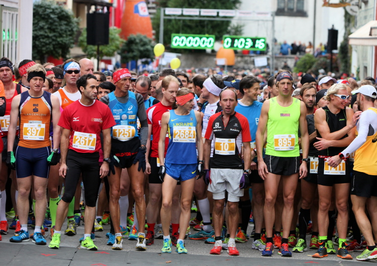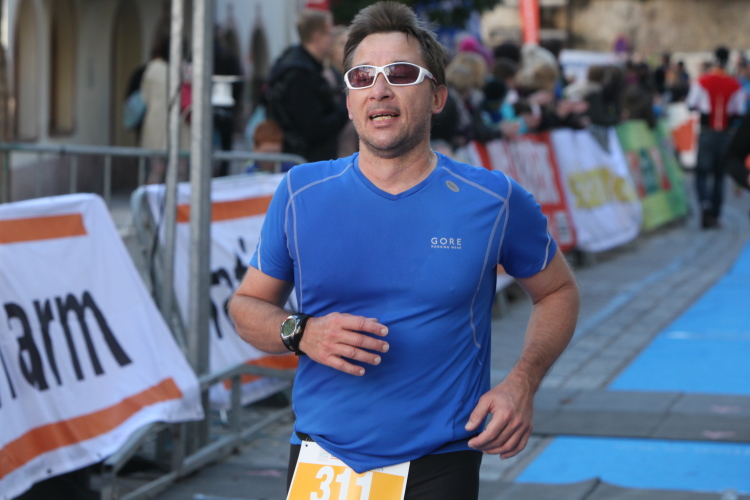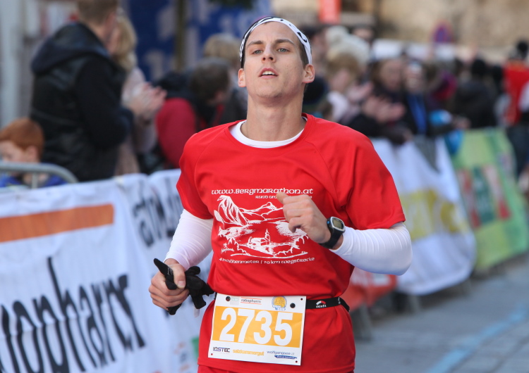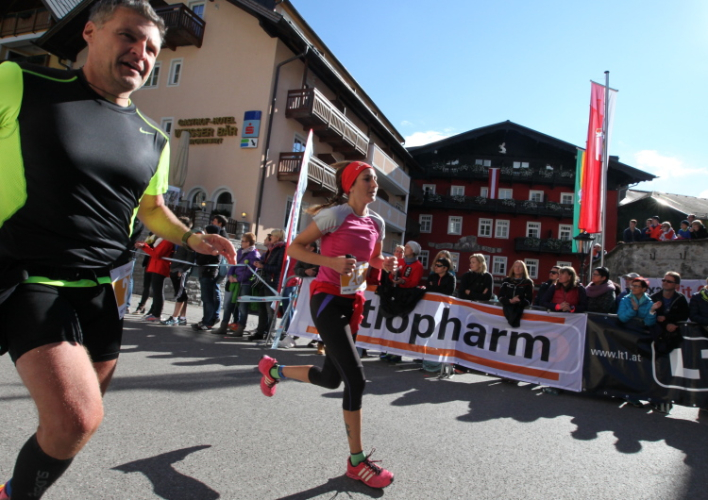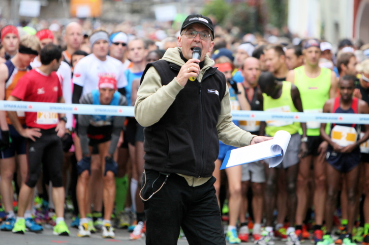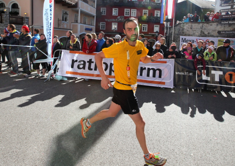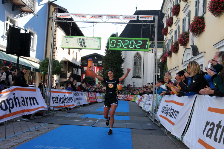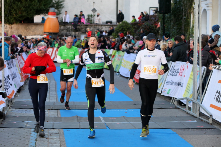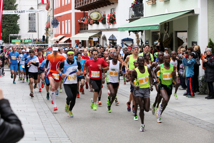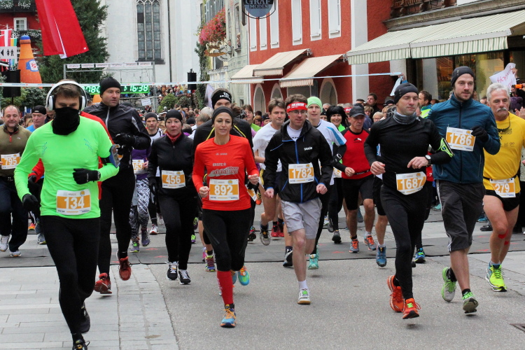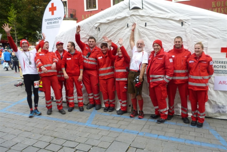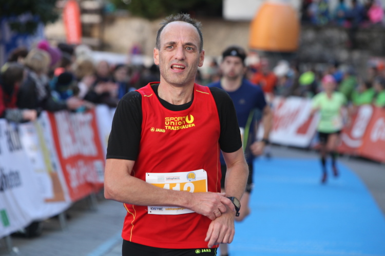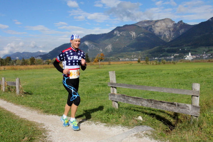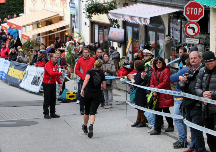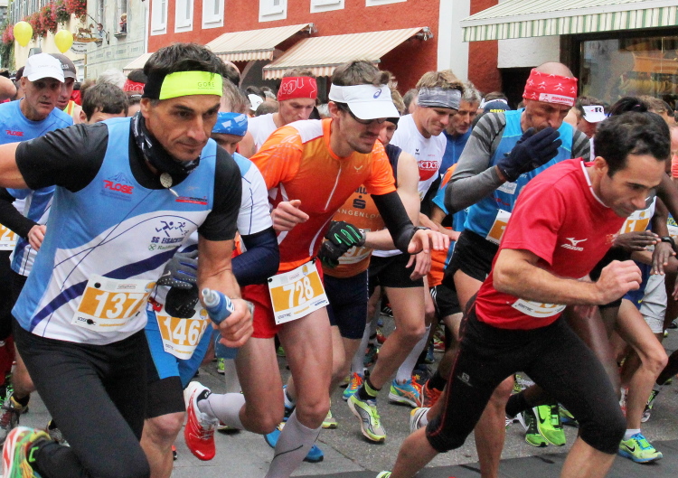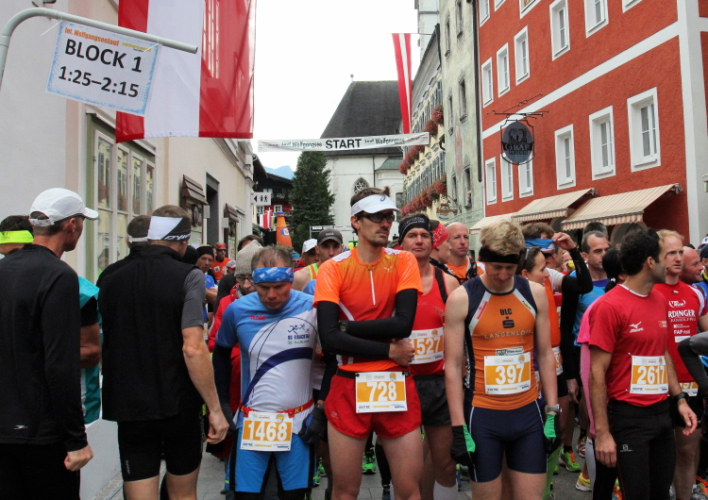In St. Wolfgang auf den letzten Metern erfolgt wieder das hochbeliebte Schaulaufen, jede Menge Leute haben sich eingefunden, uns den Abschluss dieses tollen Laufs zu versüßen. Unmittelbar auf die Kirche mit ihrem Pilgerbrunnen zu, das „Weiße Rössl“ zur Linken, geht es ein letztes Mal rechts um die Kurve und auf blauem Teppich sehr nett vom Moderator begleitet, hat dieser Lauf – wirklich! - leider schon sein Ende. Der Sperrer Franz fängt mich sofort ab und will wissen, wie es mir gefallen hat. Gerechnet hat er wahrscheinlich mit zwei Sätzen, bekommt aber diesen Bericht in Kurzform aufs Ohr gedrückt. Ja, lieber Franz, da mußtetst Du jetzt durch, situationselastisch quasi, wie der AUT-Verteidigungsminister beim Graz-Marathon! Seinem breiten Grinsen entnehme ich jedoch, dass er mit meinem Redeschwall gut umgehen kann.