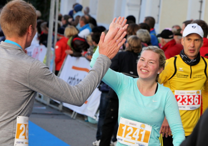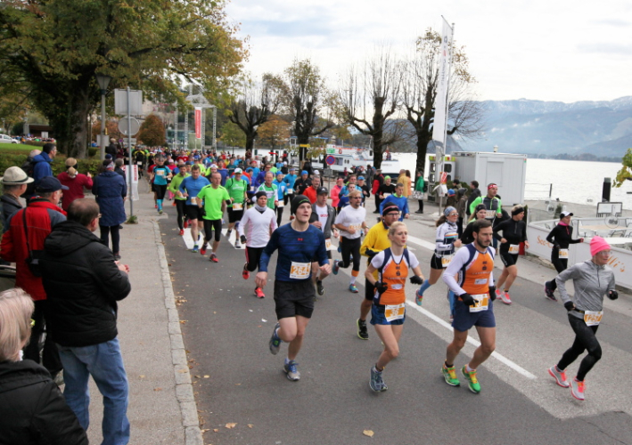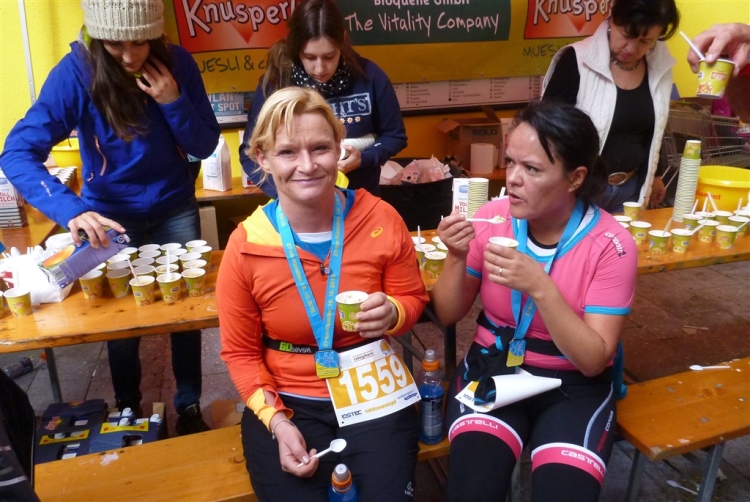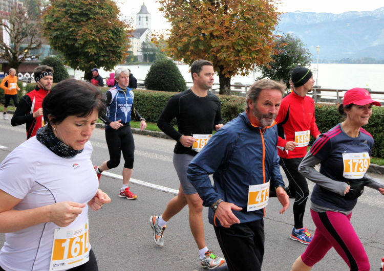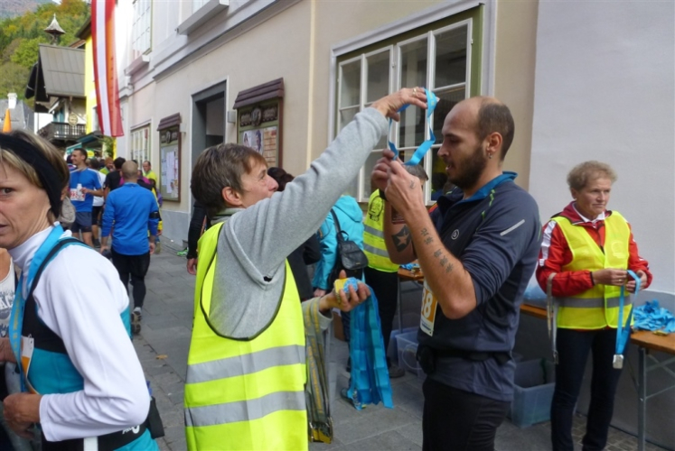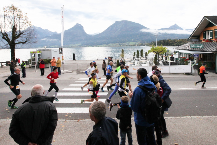 Ich bekomme eine tolle Medaille mit zwei (!) gestalteten Seiten, die einen Ehrenplatz an meiner heimischen Wall of fame erhalten wird. Mit leckerem Trank und Speis, u.a. frisches Müsli im Becher inkl. Löffel, mit Milch oder O-Saft (und damit für Veganer geeignet) sorgt man auch kulinarisch für gleichbleibendes Niveau. Niveauvoll, das ist die richtige Bezeichnung für diesen Lauf, und attraktiv, tadellos organisiert, kurzum: Es hat riesigen Spaß gemacht. Leute, auf nach St. Wolfgang am Wolfgangsee!
