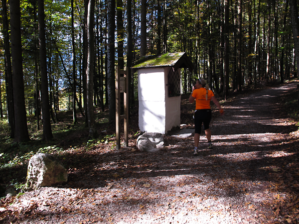 Als der heilige Wolfgang vom Falkenstein herabstieg, um seine Axt zu suchen, ließ er sich auf einem Stein nieder um zu rasten. Über den von Hunger und Durst ausgemergelten Einsiedler gleichsam erbarmt, wurde der Stein weich wie Wachs. Die Eindrücke des „Wundertäters“ sind bis heute tatsächlich zu sehen. Sich darauf setzen und das „Vater-Unser“ zu sprechen, soll bei manchen schon Wunder bewirkt haben. Für uns wird ein Wunder dann heute wohl ausbleiben, denn wir wollen ja schließlich noch irgendwann in St. Wolfgang ankommen. Stundenlang könnte man sich hier für den Aufstieg Zeit nehmen, aber noch liegen 23 Kilometer vor uns.