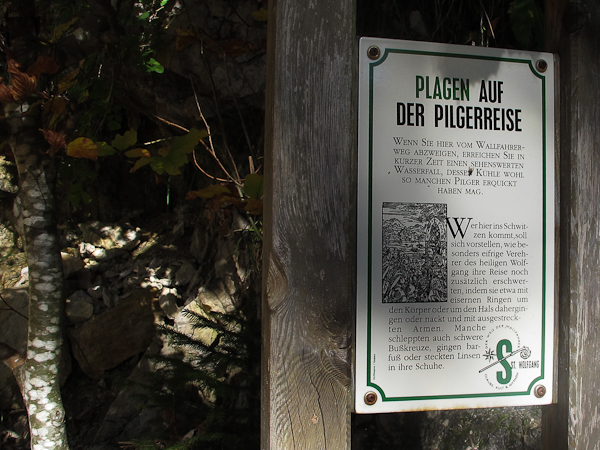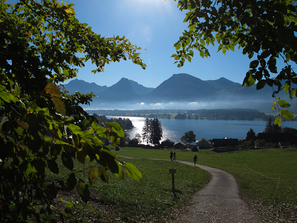 Wie es sich auf einem Pilgerweg gehört, reiht man sich ein in den Strom von Menschen, die alle von derselben Sehnsucht, derselben Hoffnung beflügelt sind. Vielleicht auch von der Zuversicht, am Ende des Weges etwas zu finden, was man im Alltag vergeblich sucht. Jetzt sind wir auf dem ältesten Pilgerweg Europas unterwegs und schon entdecke ich die erste Schautafel. Seit dem Mittelalter berichten Pilger von einer Reihe mystischer Kraftplätze rund um den Wolfgangsee, vornehmlich am Berg Falkenstein. Nach ein paar wenigen Höhenmetern schaue ich zurück. Der Blick auf den Wolfgangsee von oben raubt einem den Atem. Ha ja, auch ein wenig der immer steiler werdende Aufstieg auf diesem St.-Rupert-Pilgerweg. Wie heißt es so schön: „Wallfahrern gibt er Kraft, Läufern kostet er sie“.
