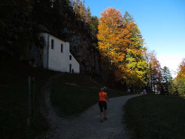 Nur wenige Kilometer und 200 Höhenmeter von St. Wolfgang entfernt, empfängt uns diese weiße Kirche, wie den Eindringling mit einer fast schon unheimlichen Stille. Die kleine Kirche, die sich an die Felswand des Falkensteins lehnt, ist eine „Unserer Lieben Frau“ und dem „Heiligen Wolfgang geweihte Wallfahrtskirche“ bereits im Gemeindegebiet von St. Gilgen. Sie befindet sich oberhalb der Höhle, in welcher der Heilige Wolfgang der Legende nach fünf Jahre gelebt haben soll. Nur das gleichbleibende Läuten der Glocke, hier und da der Applaus eines Wanderers, vermittelt das Gefühl, an dieser Pilgerstätte doch nicht ganz allein zu sein.