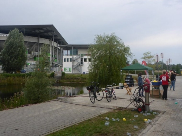 Die Realität holte mich spätestens draußen wieder ein, denn am VP drückte man mir anstelle Bier einen Becher Wasser in die Hand. Der Allerpark hatte jedoch noch weitaus mehr zu bieten, denn hier vereint fand man die Eis-Arena des EHC Wolfsburg, ein Großschwimmbad, den zum Restaurant umgebauten kolumbianischen Pavillon der Expo 2000, Bowlingcenter, Hochseilklettergarten, einen künstlichen See mit Wakeboarding-Anlage, Campingplatz…nur um einige der Möglichkeiten aufzuzählen, die die Erlebniswelt der Wolfsburger zu bieten hatte. In zwei Jahren soll wohl die fünfzehnjährige Verwandlung der vormals reinen Parkanlage hin zum Freizeitpark abgeschlossen sein.