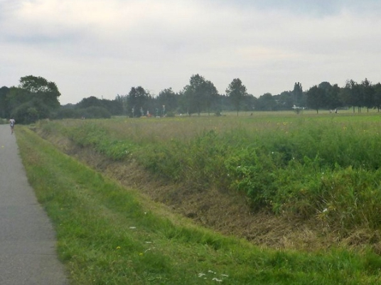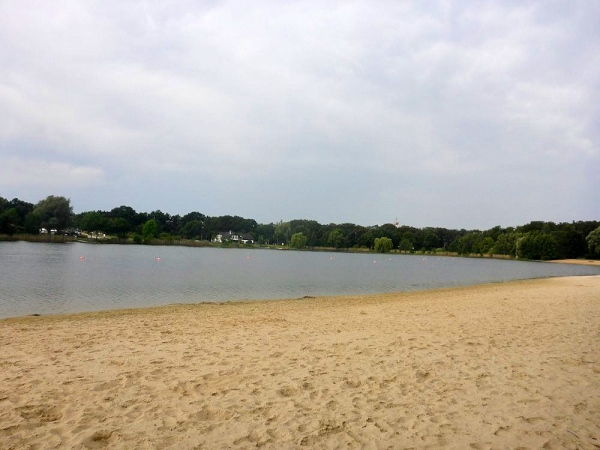Die Laufstrecke führte mich nun in westliche Richtung erneut durch den Stadtteil Hellwinkel, vorbei an mehrstöckigen Nachkriegsbauten, die damals für die Arbeitnehmer des VW-Werks gebaut wurden, sowie durch Eigenheime und Kleingartenanlagen. Der Lauf hatte auch weiterhin Landschaftsmarathon-Charakter, denn nach der Durchquerung von Hellwinkels Waldgebiet folgte der Stadtteil Steimker Berg, welches damals in das Waldstück hinein gebaut wurde. Bei der Schaffung wurden jeweils die Bäume stehen gelassen, nach denen die jeweilige Straße benannt wurde. So stehen in der Straße „Unter den Eichen“ auch heute noch überwiegend Eichen – im Birkenweg überwiegend Birken. Die Streckenposten winkten mich freundlich in den Kiefernweg. Auch gut. Die letzten Kilometer des Rundkurses führten über den Fluss Hasselbach, quer durch das VW-Bad und am großen Schiller-Teich vorbei.