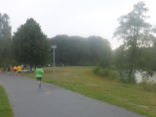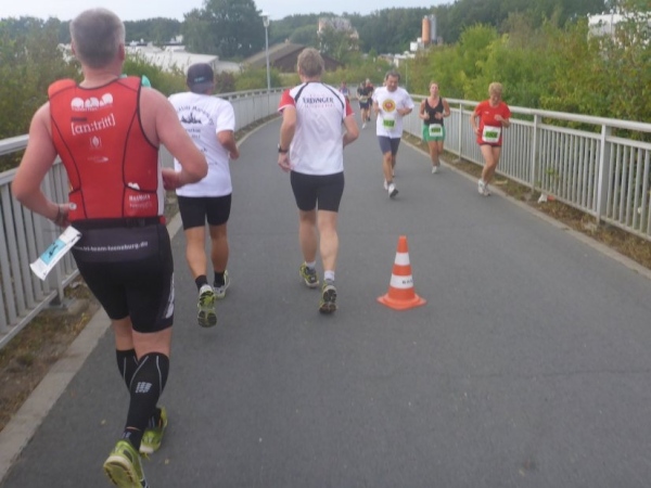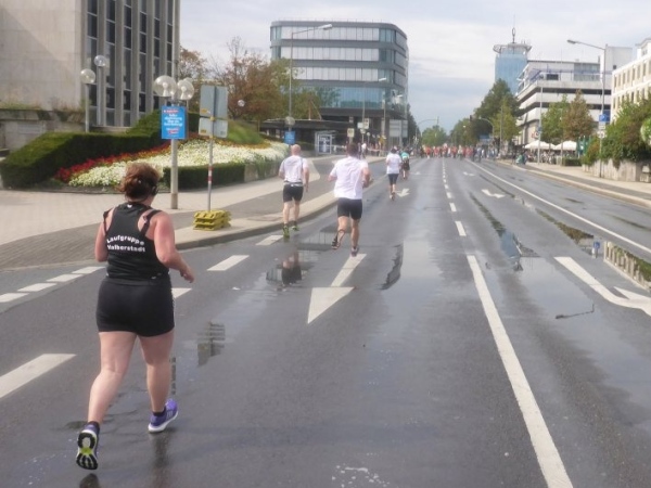 Prima, ein weiterer Marathon in unmittelbarer Nähe von Hannover. Ich lauschte eine Zeit lang der Unterhaltung und bekam derweil fast nicht mehr mit, wie uns die Laufstrecke zurück zur Kanalbrücke und anschließend durch den östlichen Stadtteil Hellwinkel führte. Dann begannen uns die ersten Halbmarathon-Läufer zu überholen.